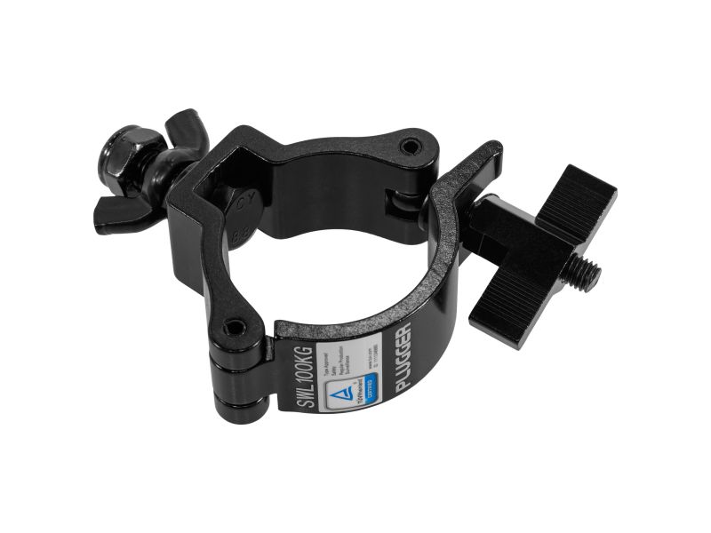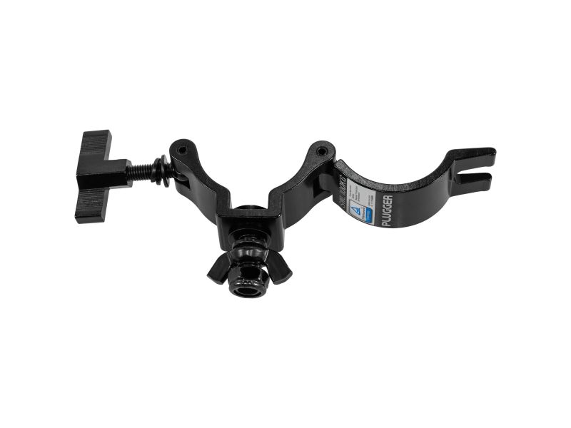 The Plugger 50HC100BK is a black load clamp specially designed to securely and reliably fix your lighting equipment. Compatible with 48 to 54 mm bars, it can support a maximum load of 100 kg, guaranteeing optimum stability for your installations. Made from solid steel and TUV Rheinland certified, it meets European safety standards, making it an ideal choice for stage managers, clubs, theatres and event providers. Its discreet black finish allows it to blend into the stage environment, while retaining its rugged sturdiness. Supplied with a butterfly clamp and Nylstop nut, it ensures rapid installation and reliable locking, preventing accidental loosening. Its design facilitates both temporary and permanent installations. With the Plugger 50HC100BK, you get an essential accessory that combines safety, practicality and sturdiness, designed for stage and event professionals.