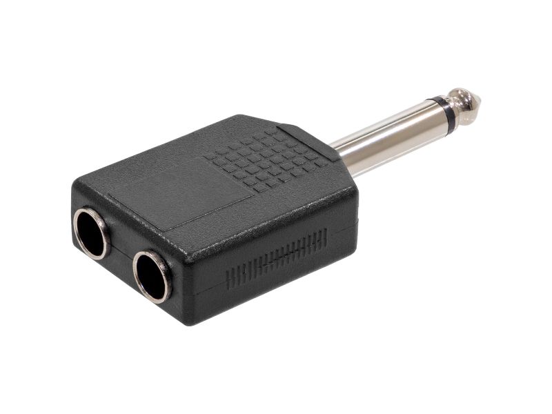 Adapter 2 Female Jack Mono 6.35 / 1 Jack Mono Male 6.35mmMetal ConnectorBlister Packaging 1 pieceEASY Range