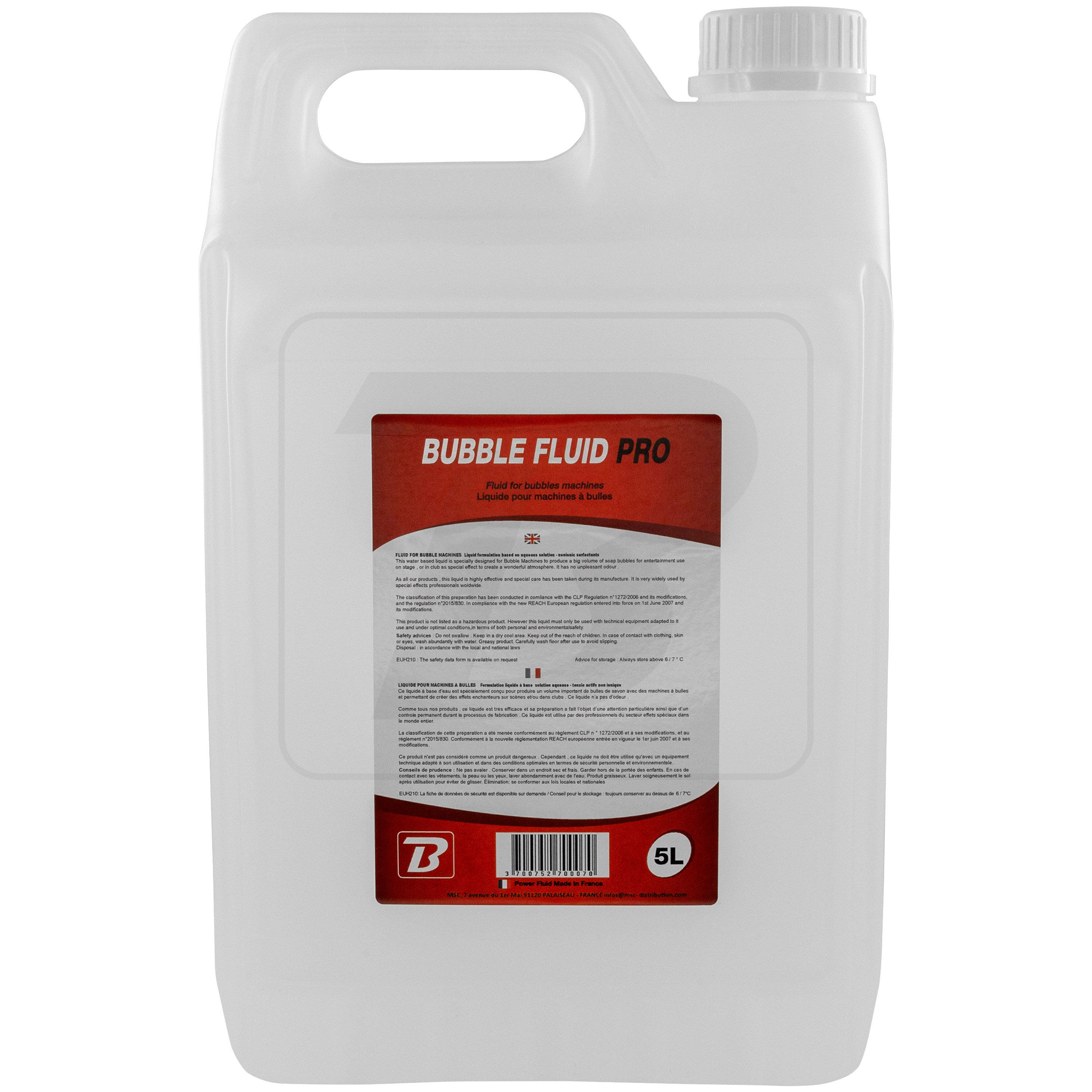 Bubble Fluid 5L BoomToneDJ Standard Bottle for liquid bubble machine Format 5 liters Delivered ready for use Suitable for all types of machine gun or bubble. Water based High chemical purity For very many bubbles, ideal to make your effe...