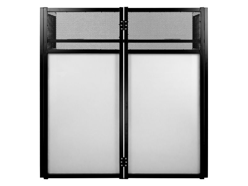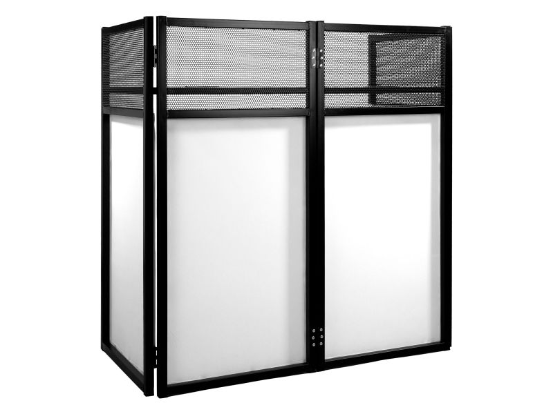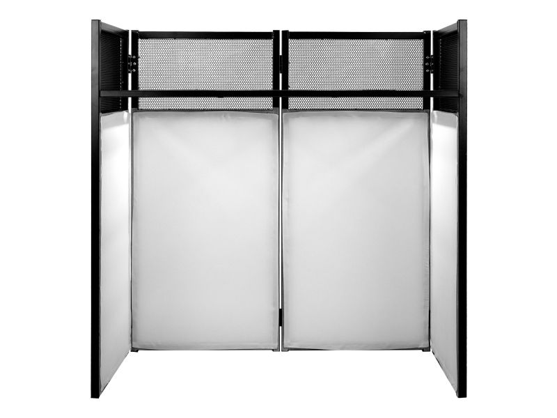DJ Desk stand allowing you to install your DJ equipment professionally and hide your control room. This all-in-one solution is ideal for any facilitator looking for a system that is easy to set up and transport. White lycras and metal table. BoomTon...