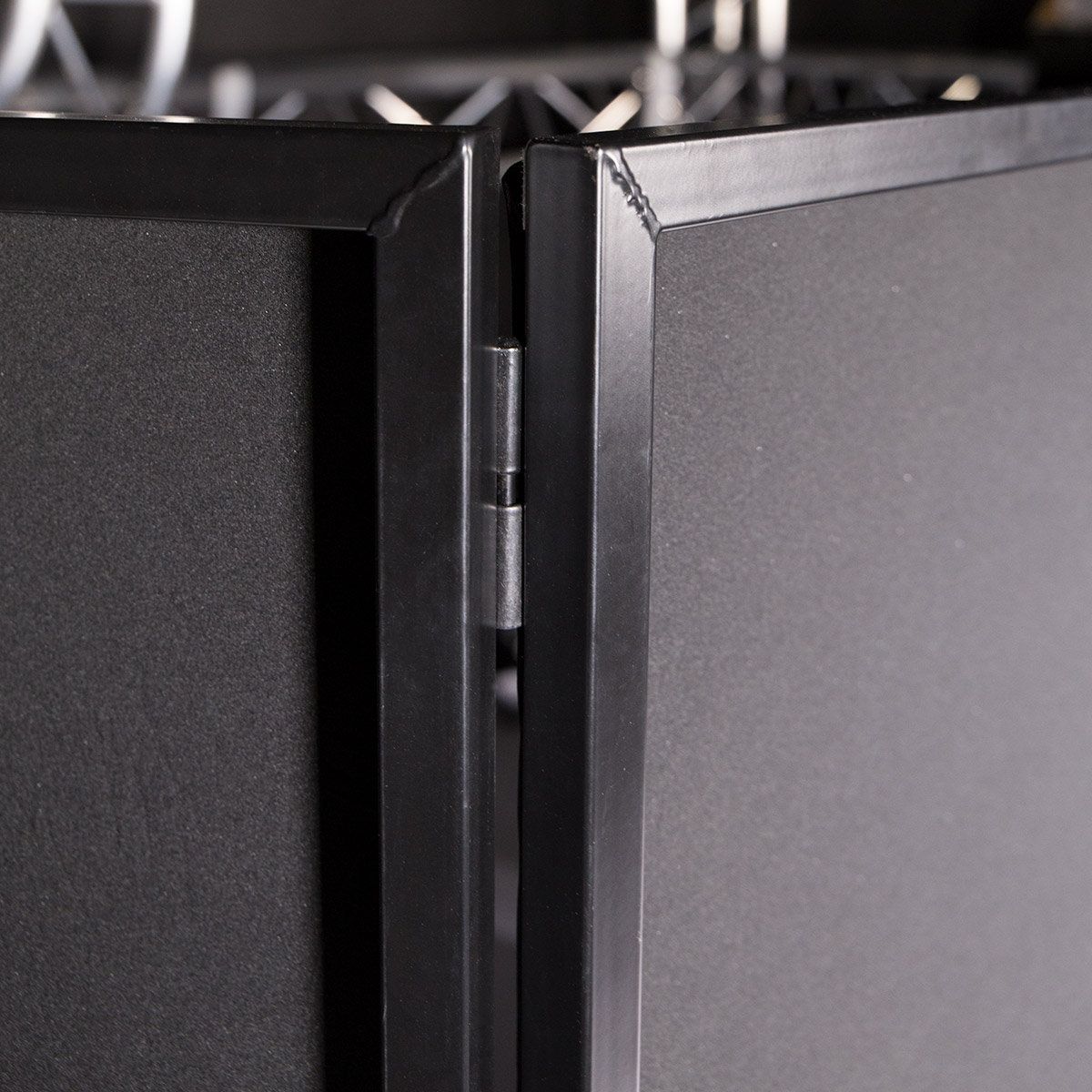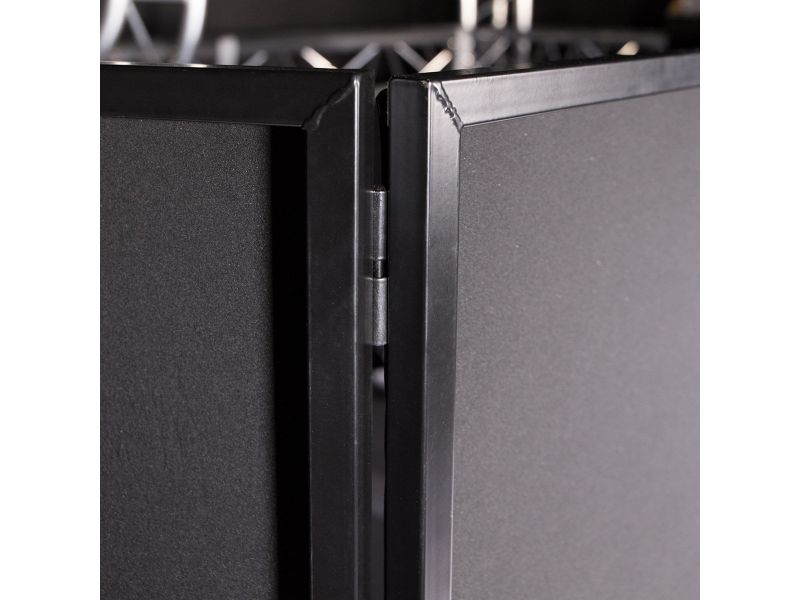 Light metal structure 4 stretch fabrics black Consisting of 4 foldable panels Sliding hinges for assembly / disassembly without tools Cleaning of fabrics by hand and in cold water. Do not spin to avoid any deformation
