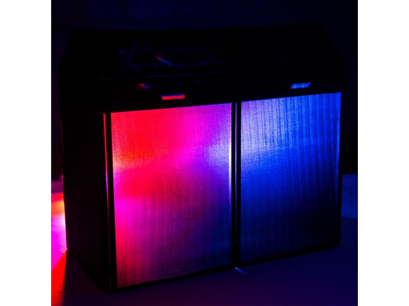 BoomToneDJ DJ STAND PRO Black Removable and transportable DJ furniture Made up of frame with hinges Version with black lycra Can be backlit with LED PAR for example Stand width 1.46m stand height 1.30m