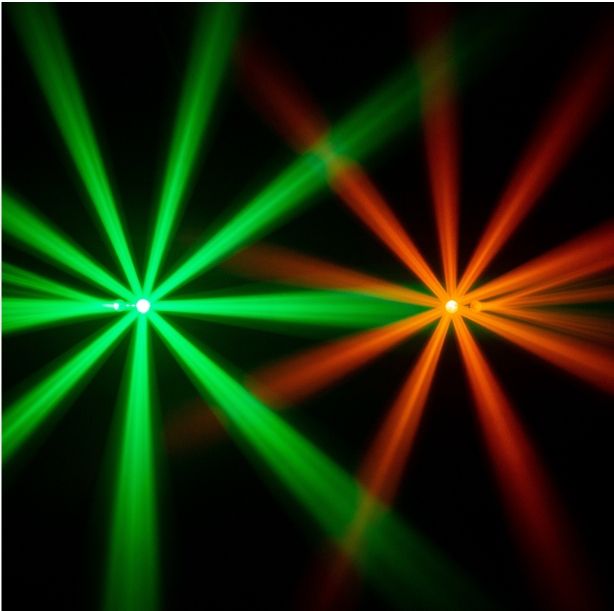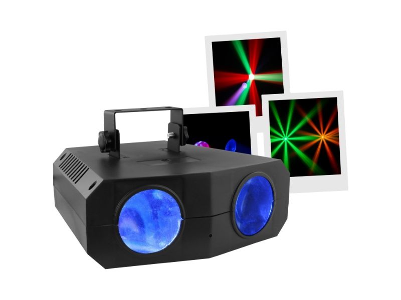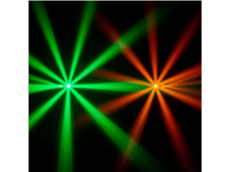BoomToneDJ Double Moon Moonflower LED light set with 2 lenses. An additional color effect thanks to its transparent case. Easy to use plug & play lights. Very wide diffusion angle, intense colors. Automatic quality programs.
