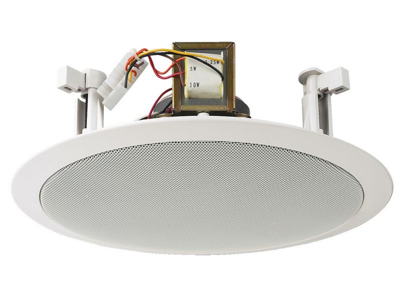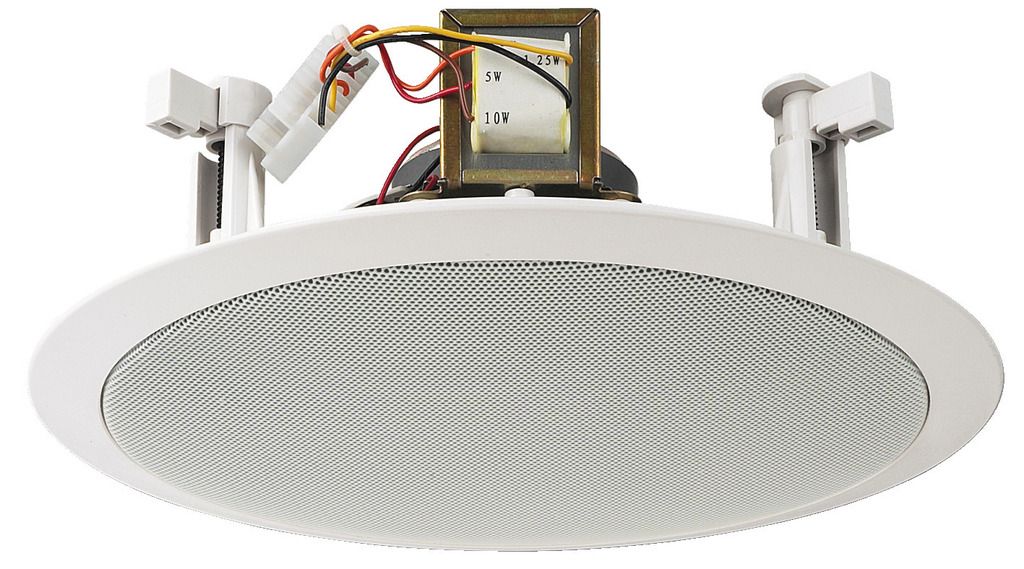 PA stropný reproduktor 100 V linková technológia cez audio transformátor s možnosťou výberu výkonu širokopásmový reproduktor s dvojitou membránou Plastové púzdro s ochrannou kovovou mriežkou Plastový materiál je ABS a samohasiaci podľa normy UL 94V-0 P...