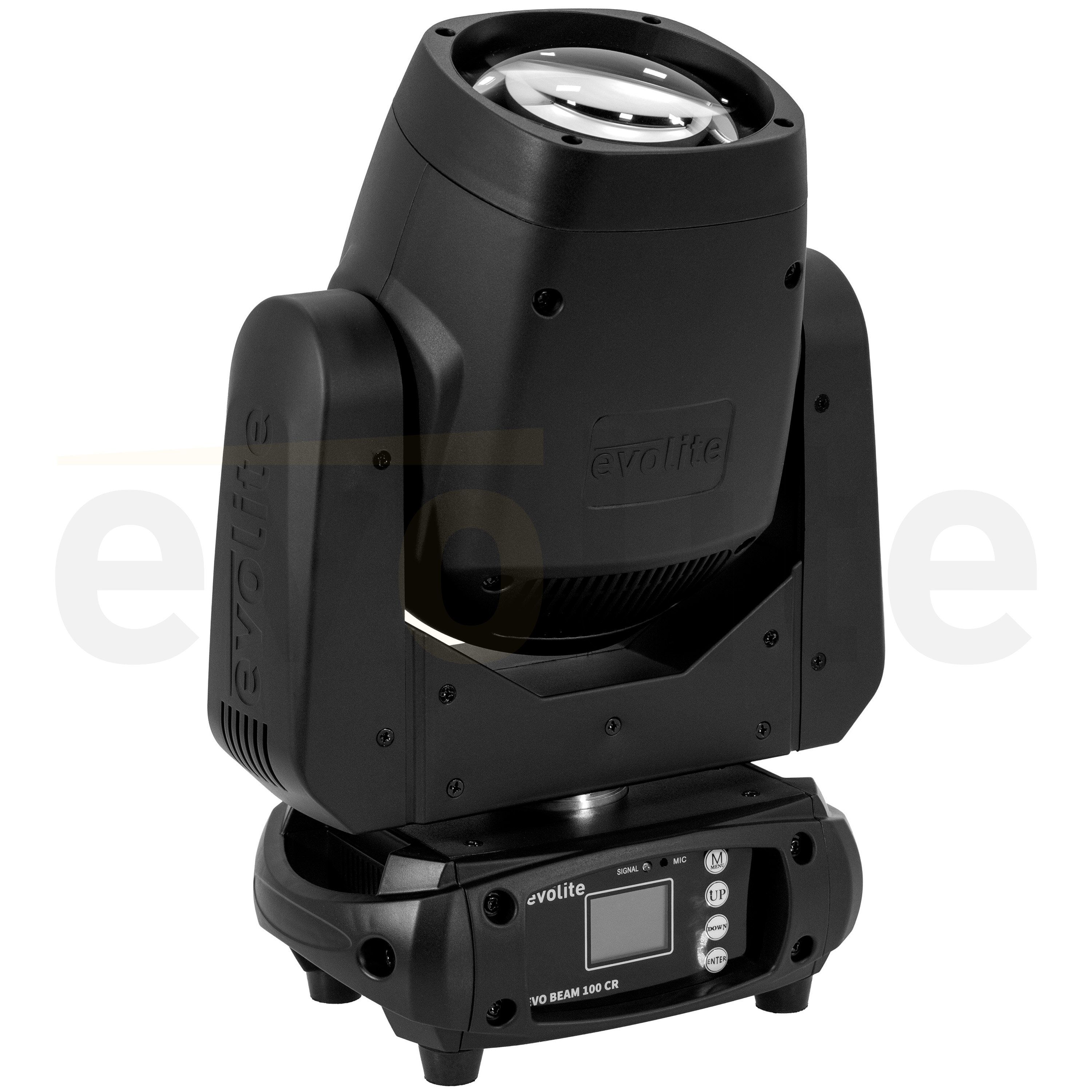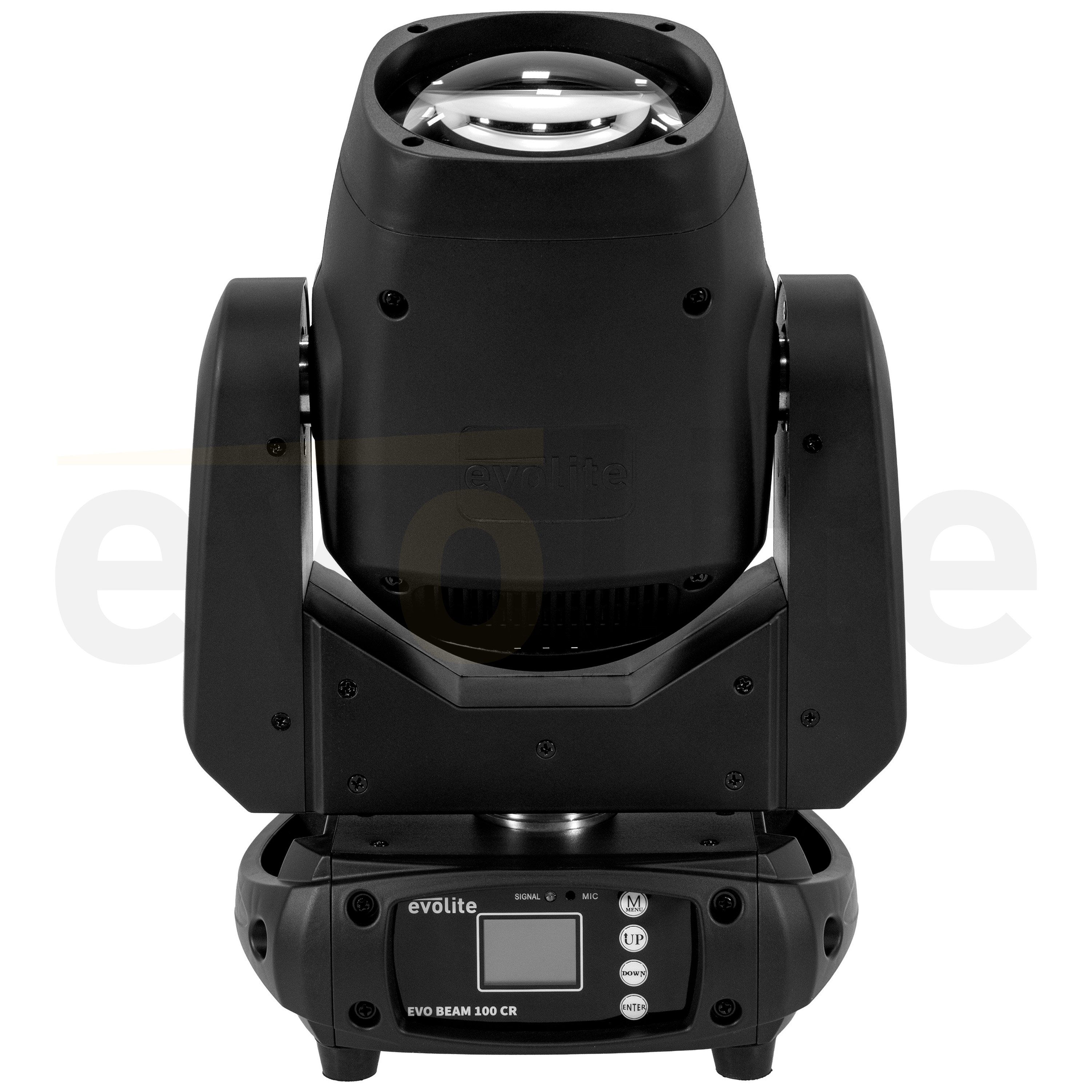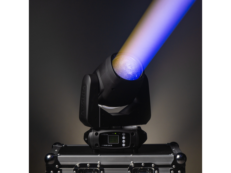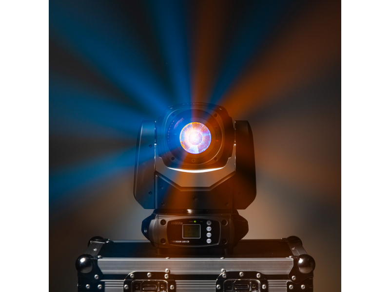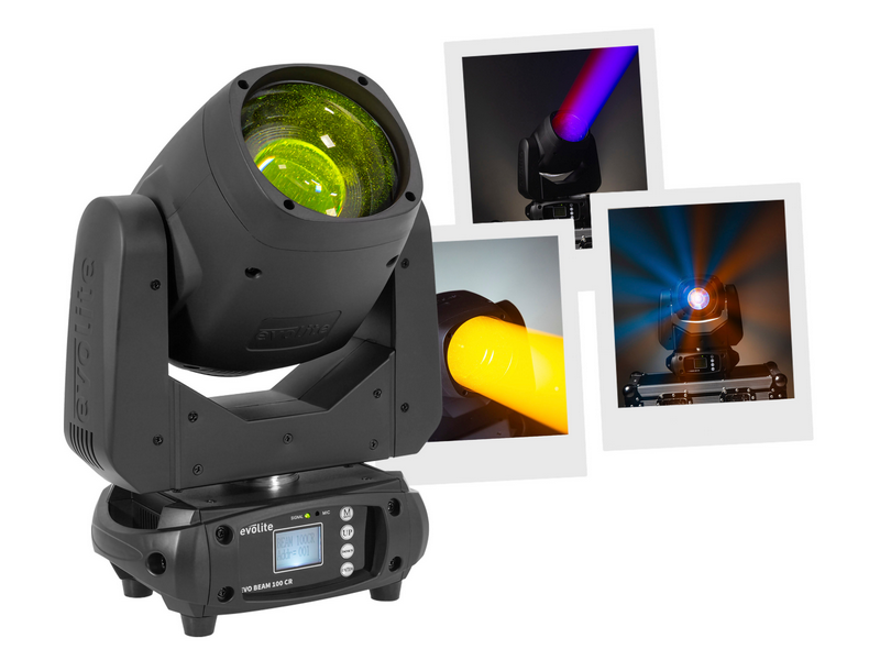 evolite Evo Beam 100-CR: 100W LED Beam head, 3° beam, colours, gobos, 8-facet prism and dual DMX/auto mode for clubs, performances and TV sets.
