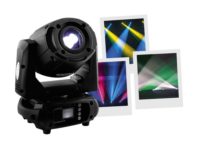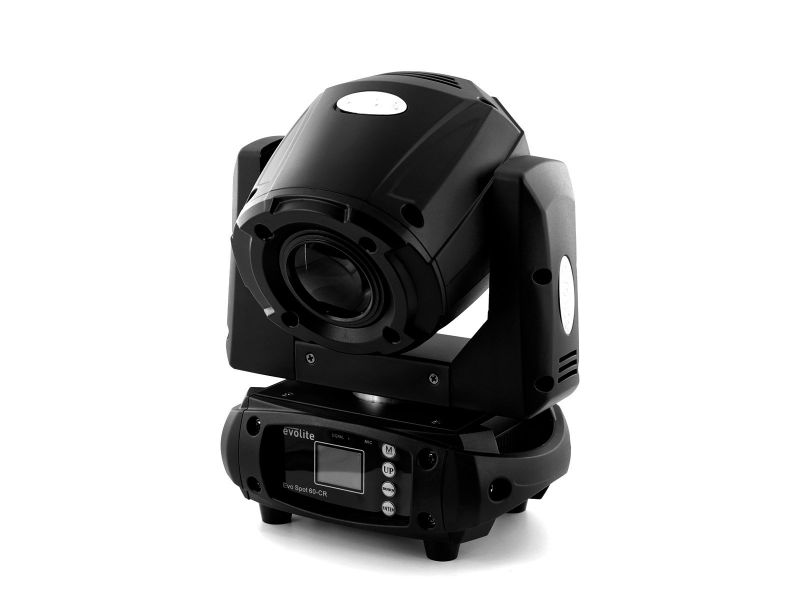 60W spot LED robotic spotlight, Compact Range series, with a 60W white 7500K LED. LED spotlight type bezel of the EVOLITE Compact Range series PAN rotation 360°/540°/630° and TILT 90°/180°/270° rotation Equipped with a 60W white 7500K LED Moto...