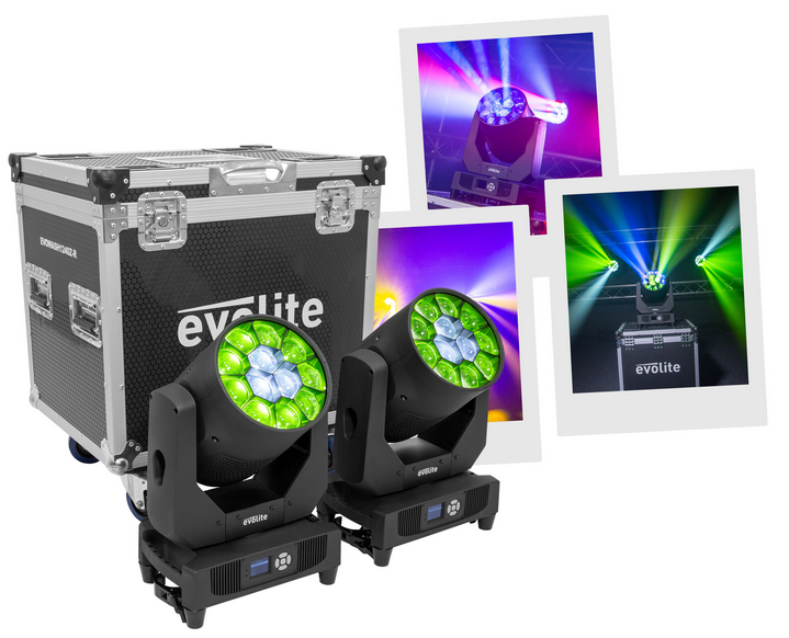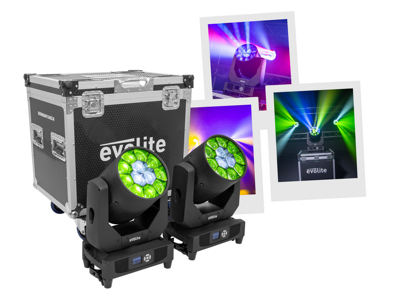 Lyres Wash 12x 40 W with Zoom and rotation Bee evolite Evo Wash 1240z-Revolite Evo Wash 1240z#R Set12 x 40 W RGBL 4#in#1 LEDs (30,000h)Motorised zoom from 7 to 55Ultra#clear optics with homogeneous RGBL colour mixingLED control in groups of 3Colour temper...