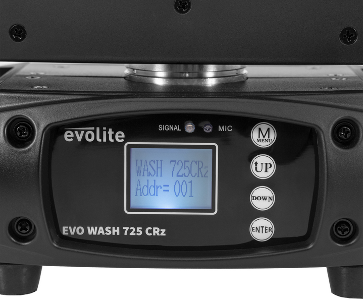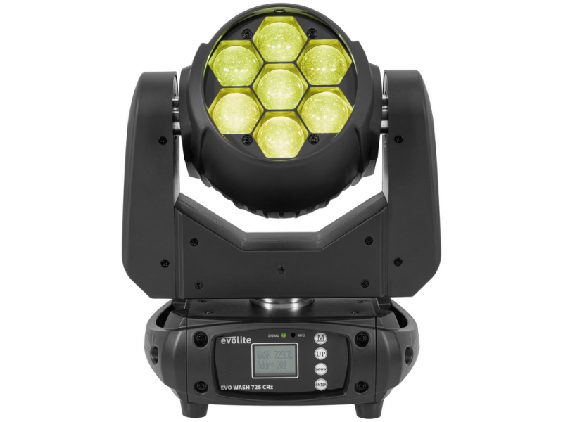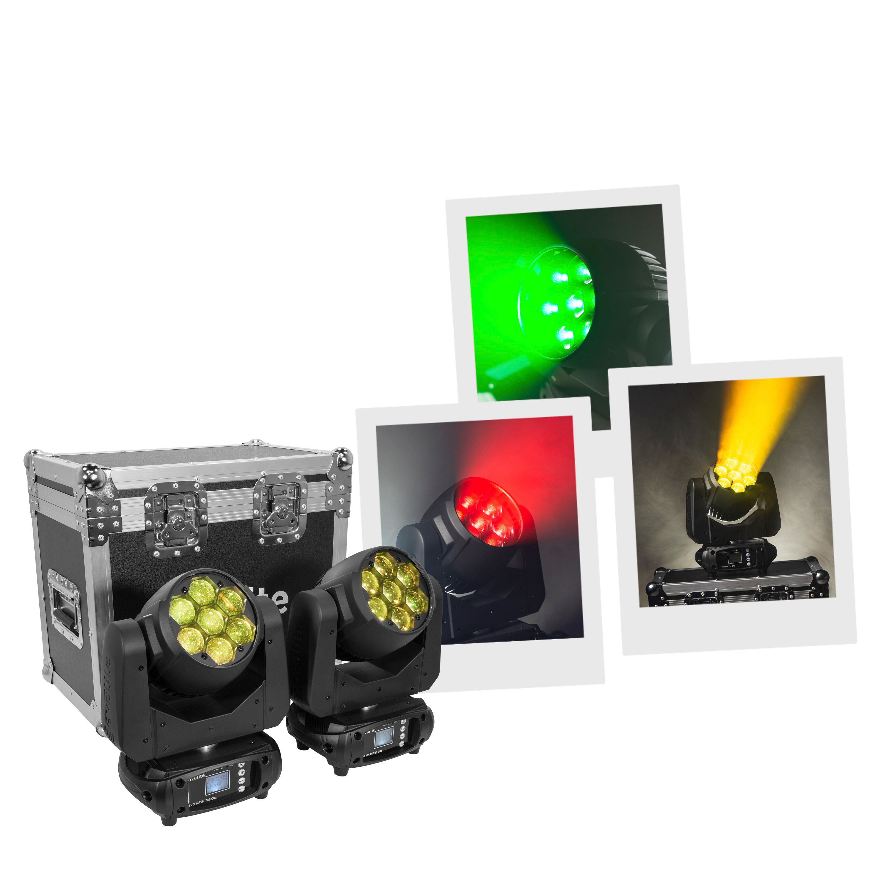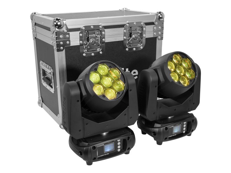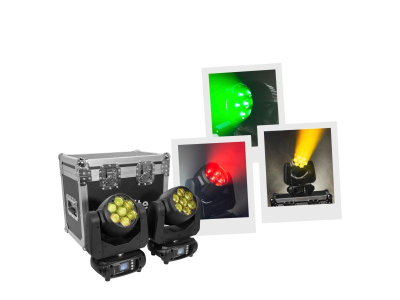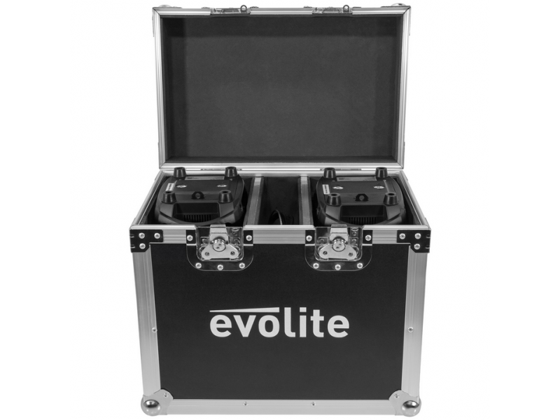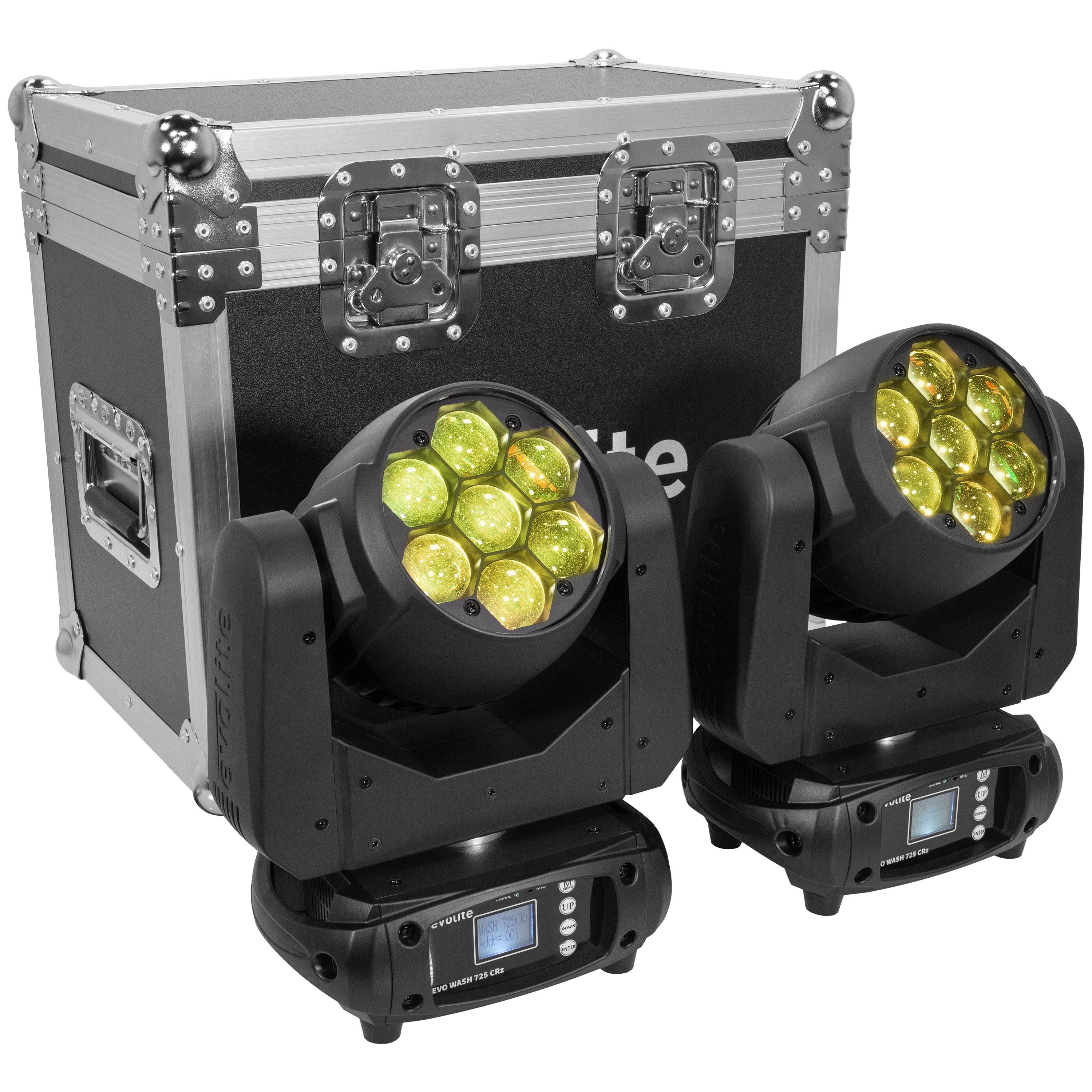 Evo Wash 725-CRz Set from Evolite, pack of two RGBW LED Wash lights in a flight case. Set of 2 Wash#type LED headlights from the evolite Compact Range series, supplied in a flight case 360° / 540° / 630° PAN and 90° / 180° / 270° TILT rotations...