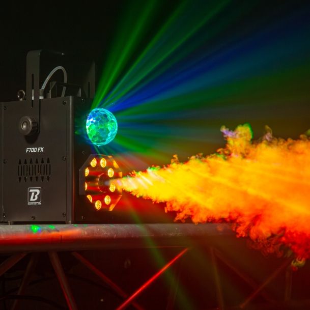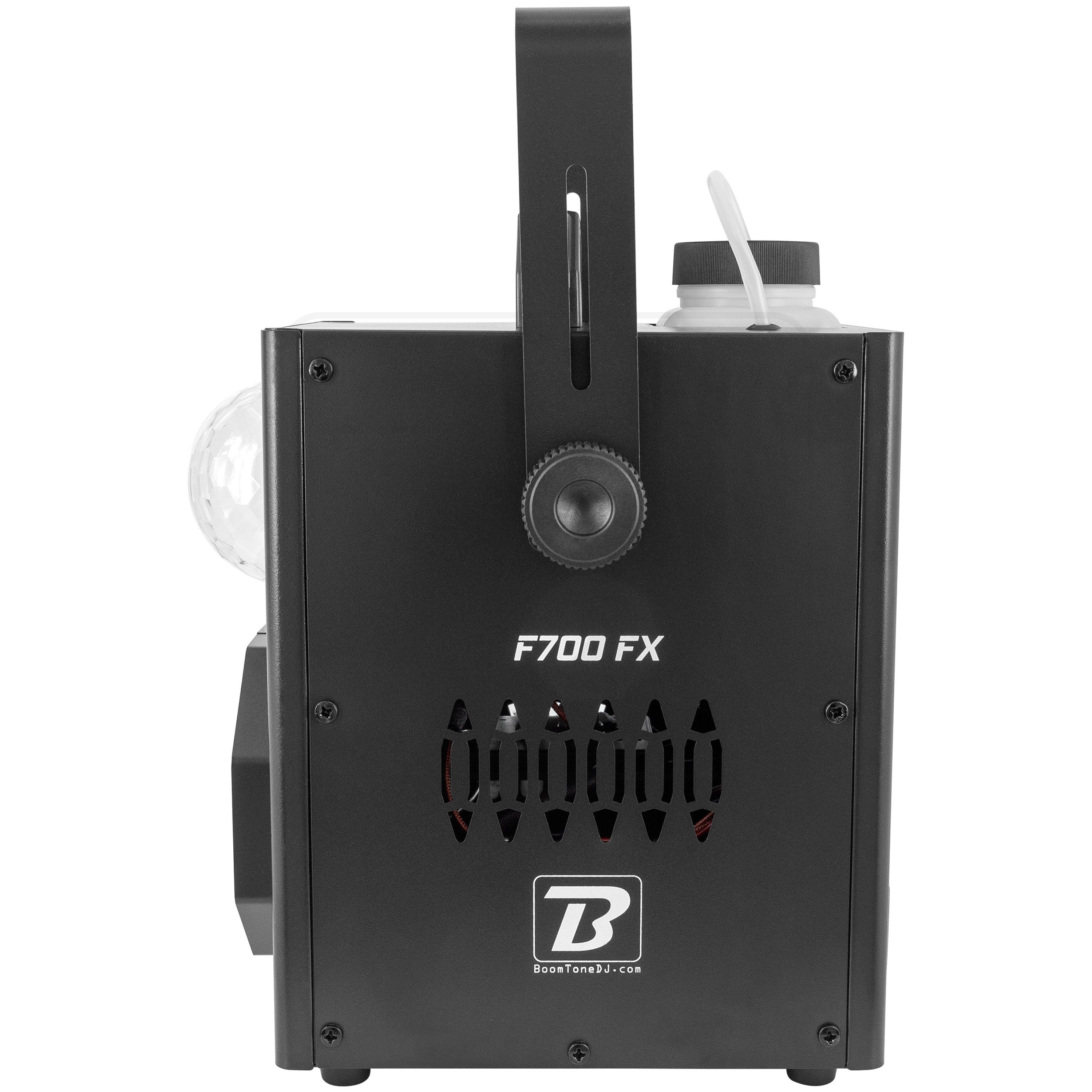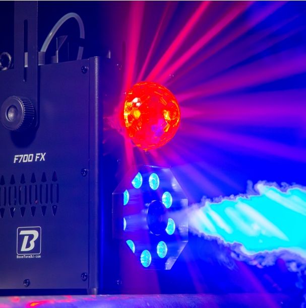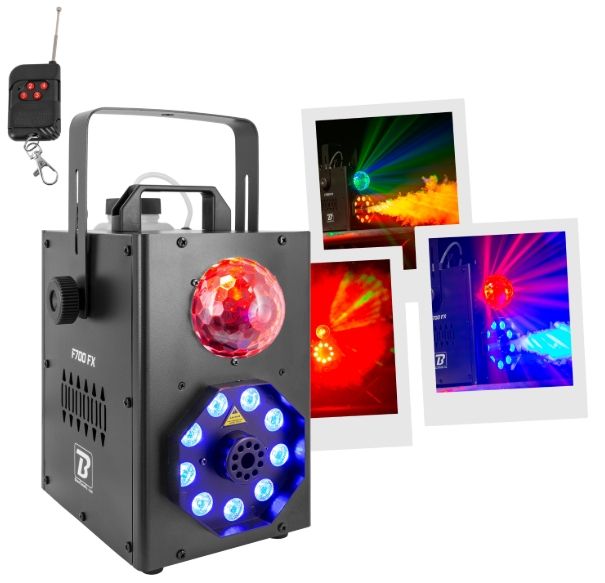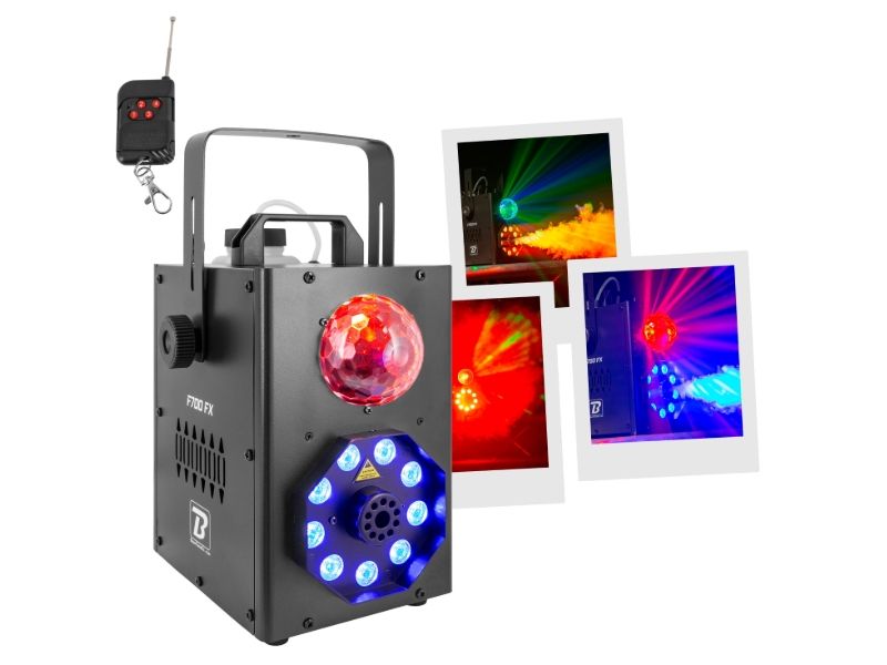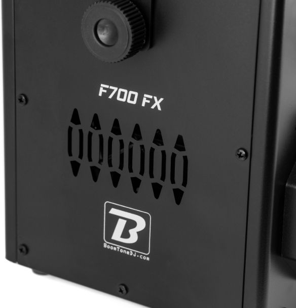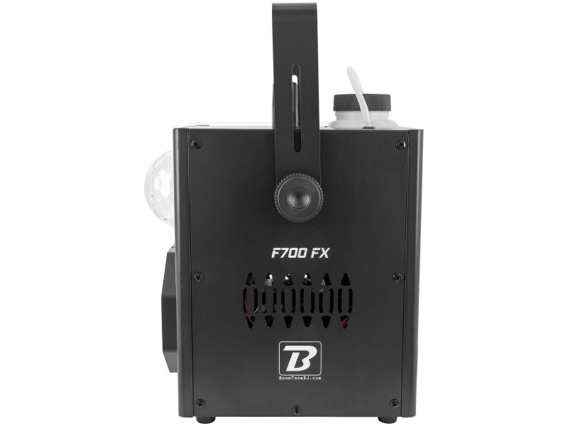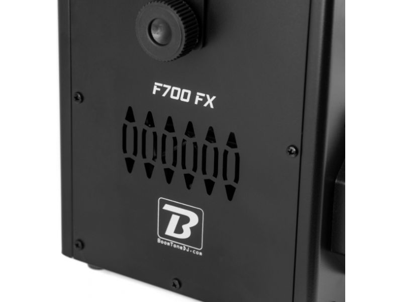 The BoomTone DJ F700 FX is a compact and powerful smoke machine designed to enhance the visual ambiance of your events. With its 700W power and integrated RGB LEDs, it produces a dual effect: a dense cloud of smoke that highlights your lighting effects, while diffusing dynamic colors for enhanced stage impact. It's ideal for a variety of settings, whether for a mobile DJ, a wedding, a birthday party, or a small-stage performance. With a flow rate of 65 m³/min, the F700 FX easily covers a dance floor or a medium-sized stage area. The included wired remote control allows you to remotely control the smoke output and LED lighting, without having to directly operate the machine during the performance. The rapid heat-up time of 3 to 4 minutes ensures quick start-up, while its 0.3-liter tank provides sufficient battery life for occasional use throughout the evening. Its compact design and robust metal housing make it ideal for mobile contractors, party hosts, and small stage installations. Easy to transport and install, the BoomTone DJ F700 FX is a versatile solution for creating a festive atmosphere, indoors or in sheltered outdoor areas.