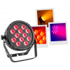 Flat led par with 12 12W 6 in 1 RGBWA-UV leds and an IR remote control Led parlight Projection angle 25 ° Controllable with DMX, Auto, Music, IR remote control Plastic case Link possible by female IEC power cable Double mounting or fixing...