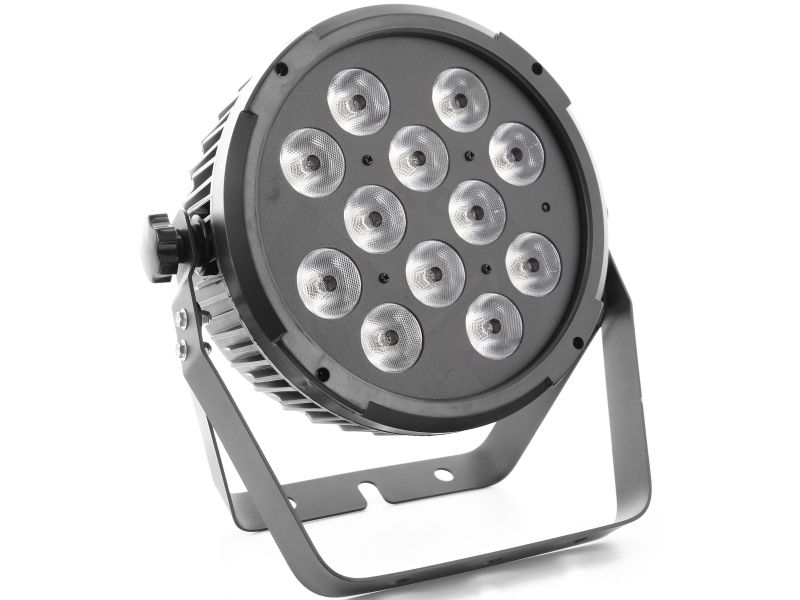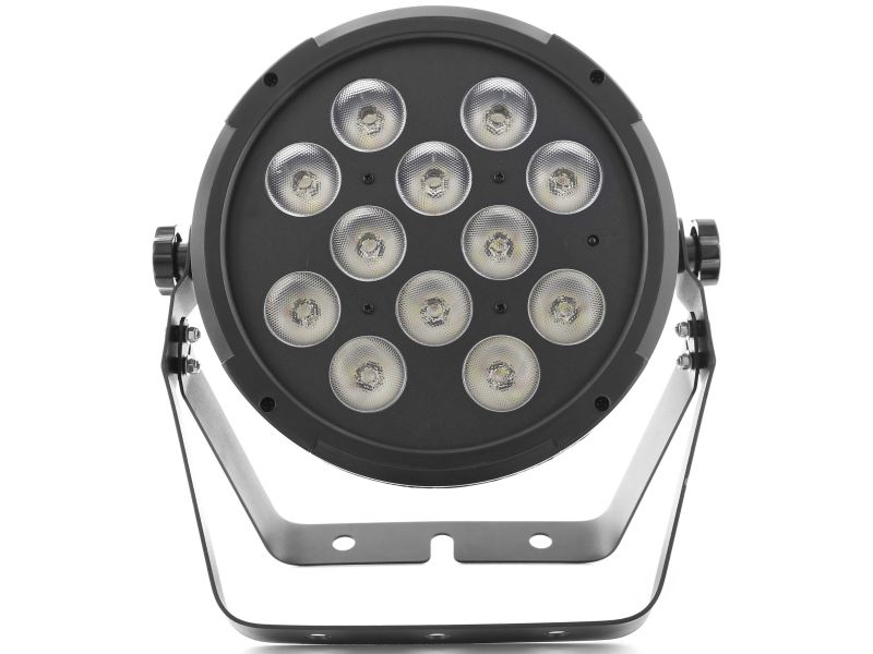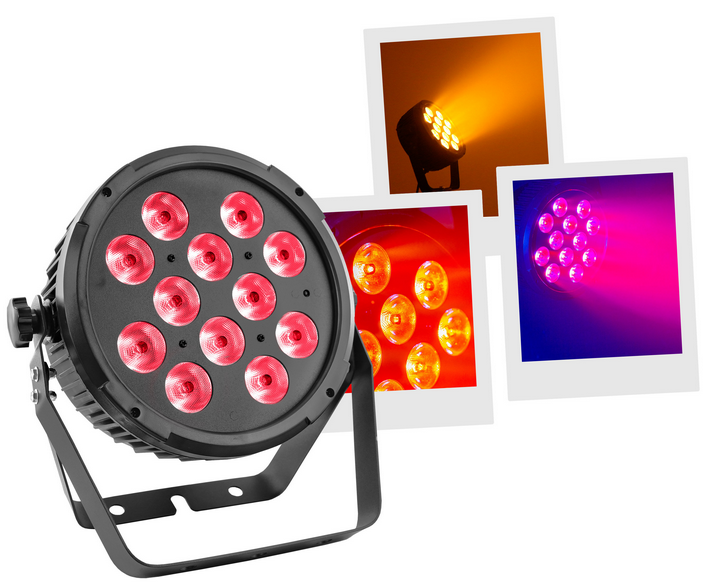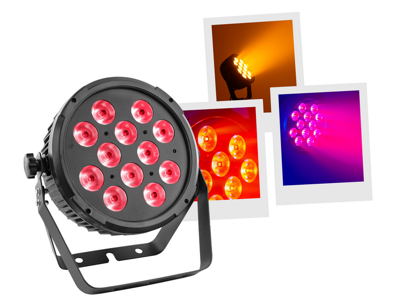 Flat led par with 12 12W 6 in 1 RGBWA-UV leds and an IR remote control