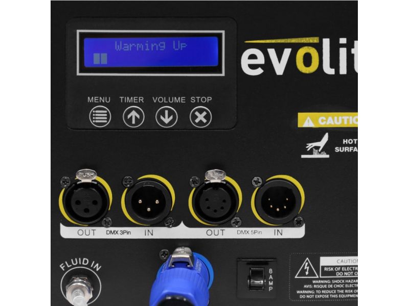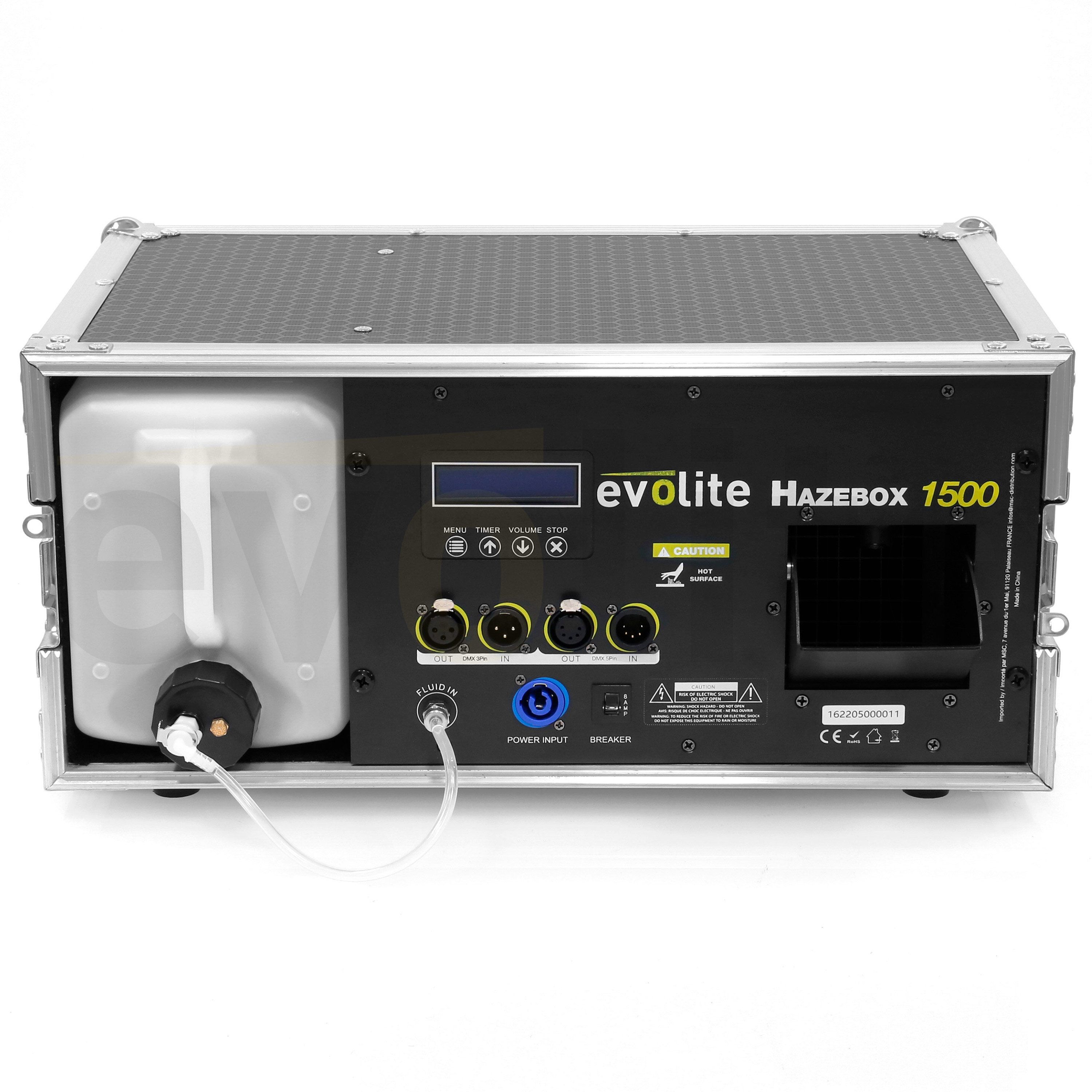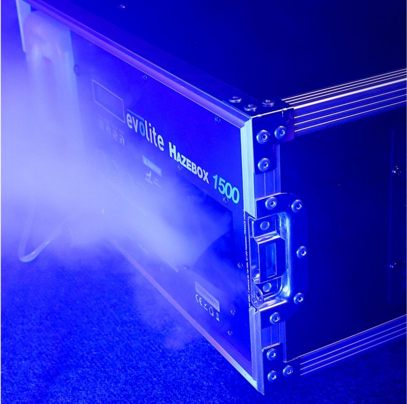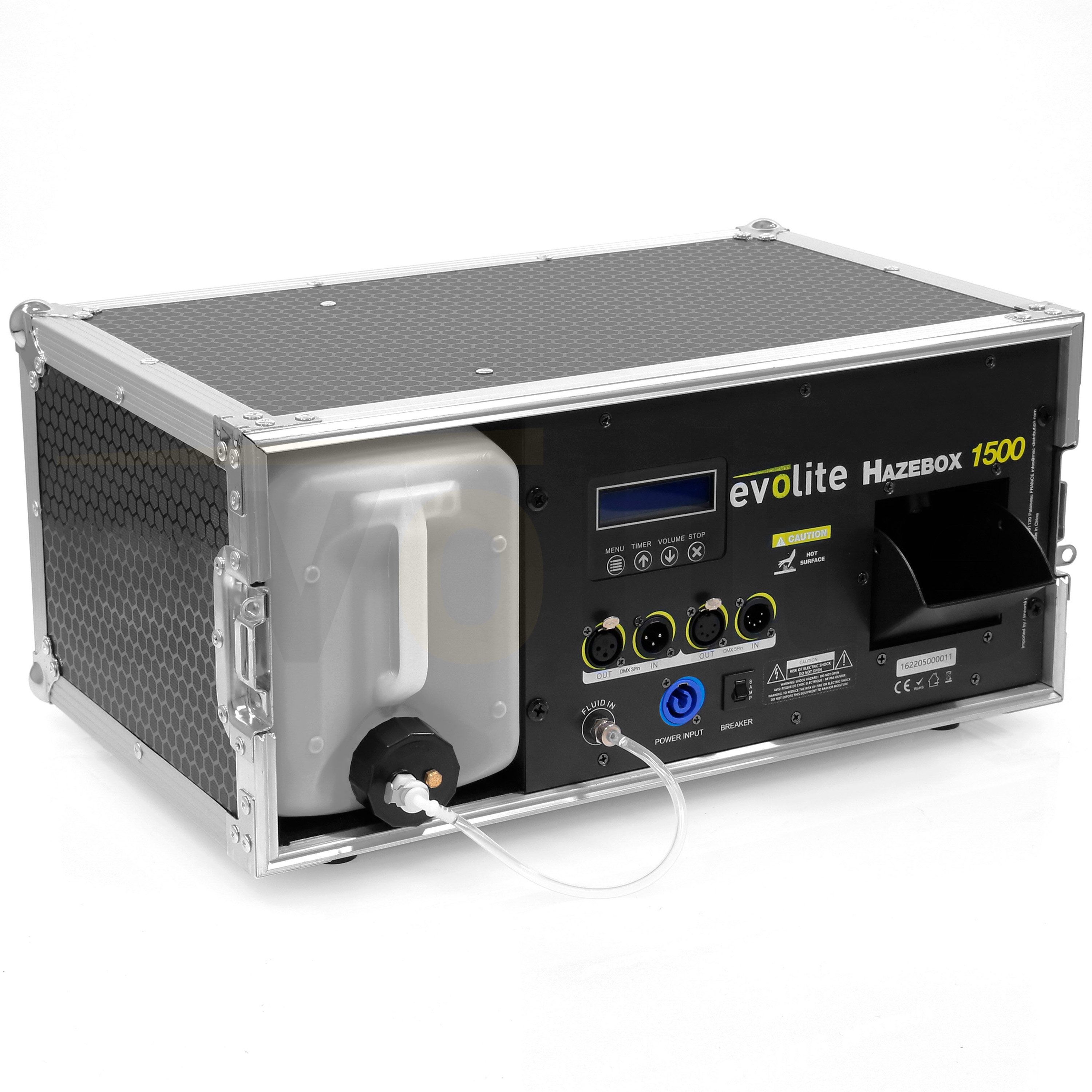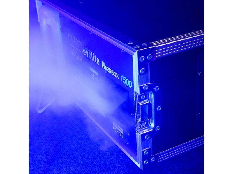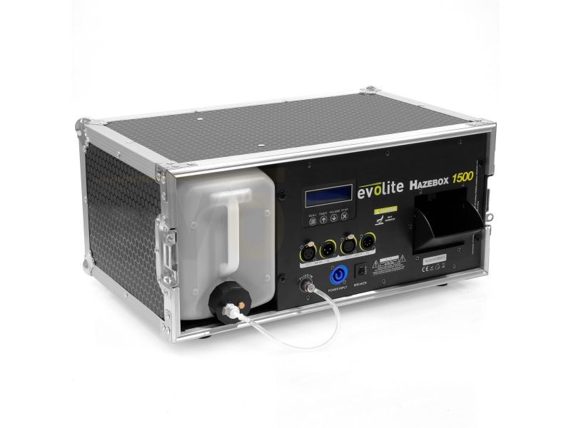 Professional Flightcase Fog Machine 2 DMX channels LCD screen for Continuous fog production DMX control of DMX addressing and easy menu navigation thanks to its navigation wheel and backlit LCD display. CE / RoHs approvals / EN 2014/30 / E...
