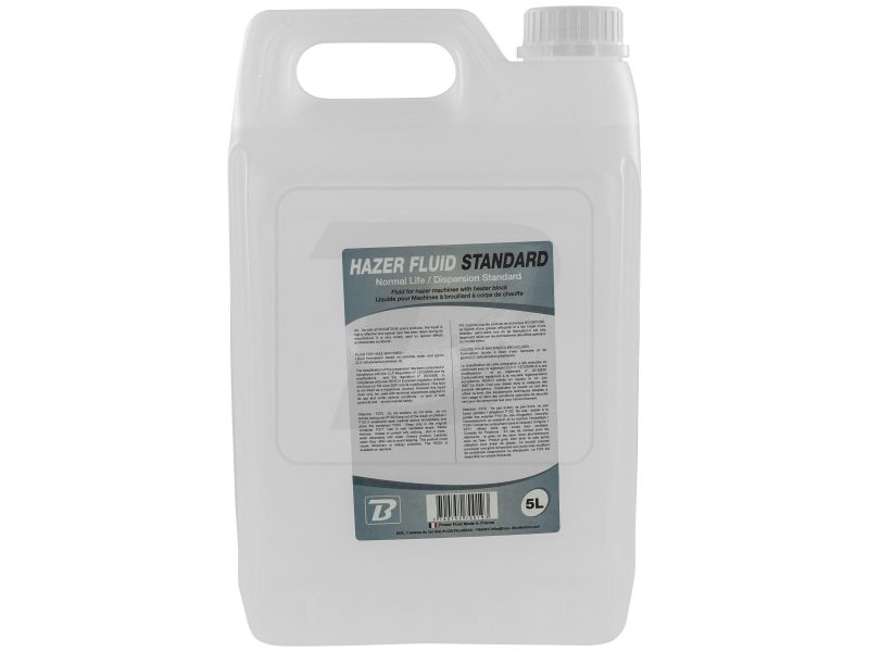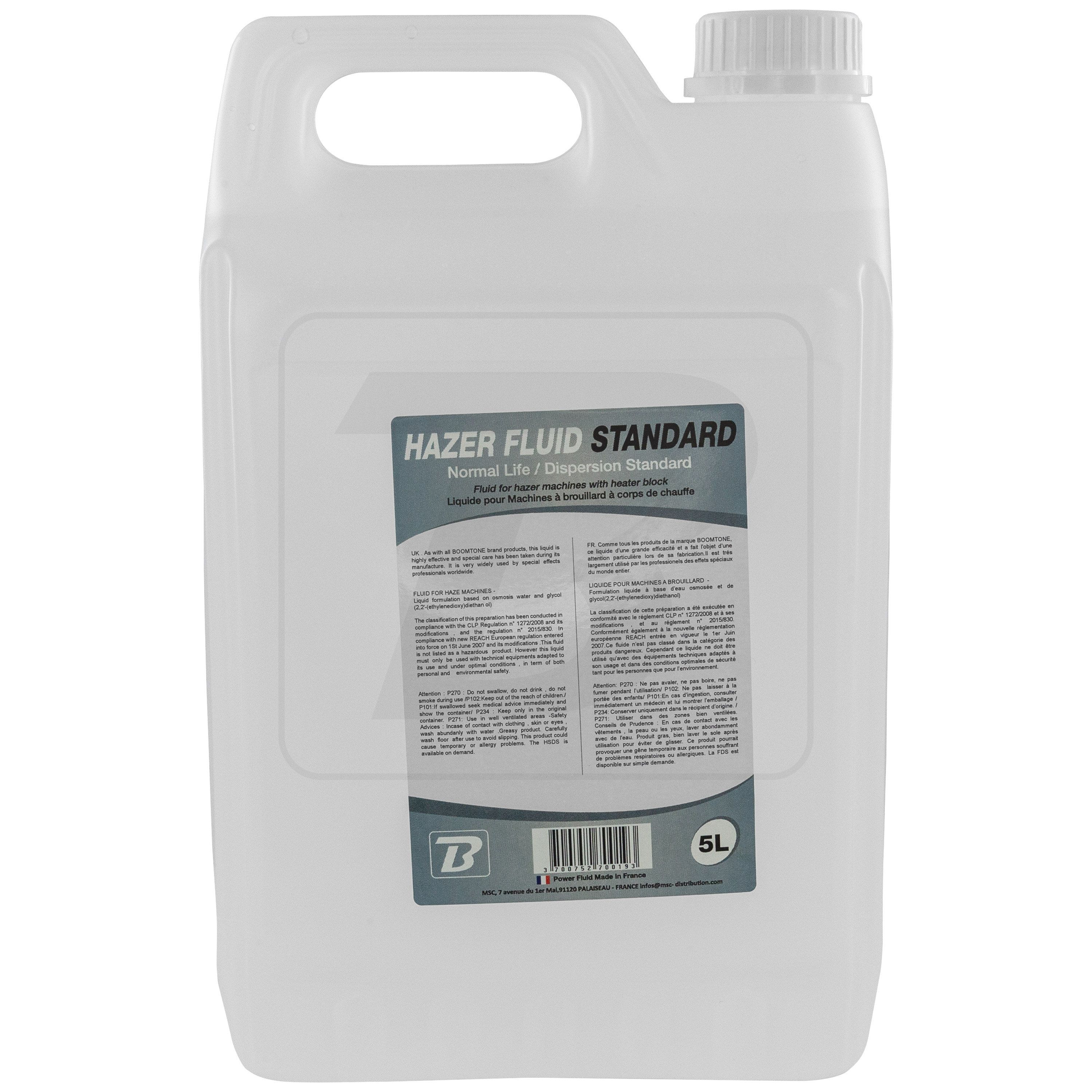 BoomToneDJ Standard Fluid Hazer 5L Fog liquid Bidon Format 5 liters Works with fog machines radiators Concentrated Liquid and particularly effective Water#based composition Slow Dispersion Fog Light White Gives a muffled atmosphere C...