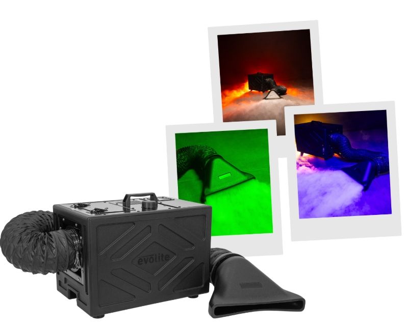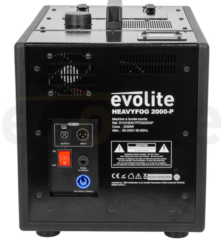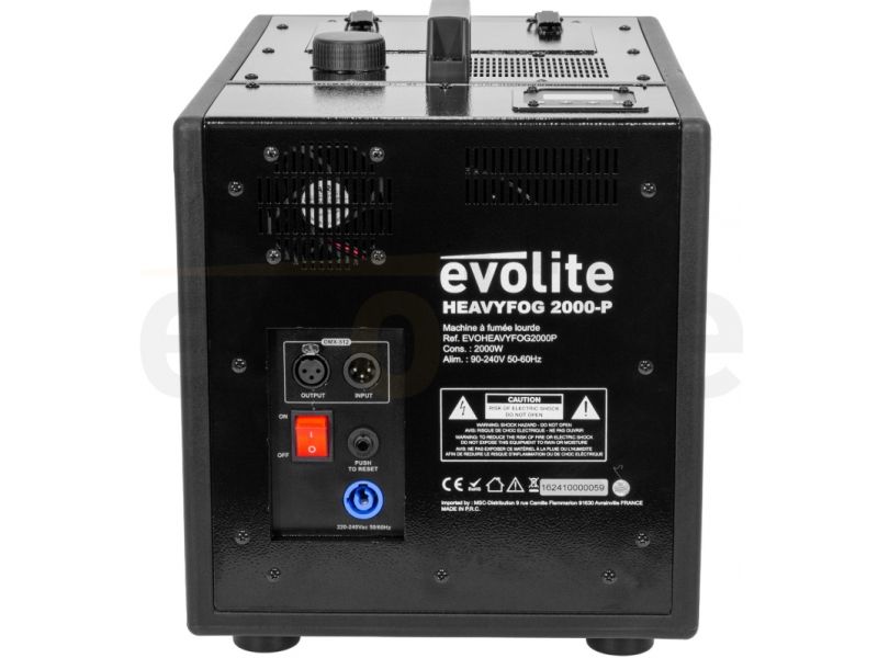 evolite HeavyFog 2000-P: professional heavy fog machine, ground fog, DMX control and remote control. Ideal for stages and events. evolite HeavyFog 2000#P Professional heavy fog machine in ABS Produces thick smoke that stays on the ground For u...