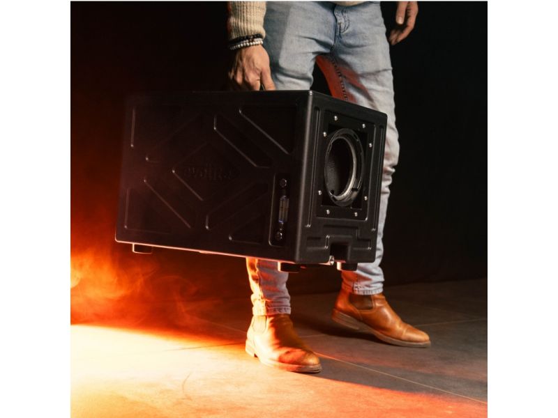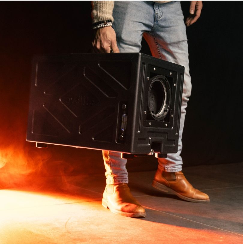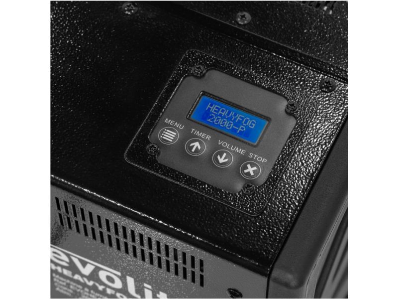 evolite HeavyFog 2000-P: professional heavy fog machine, ground fog, DMX control and remote control. Ideal for stages and events.