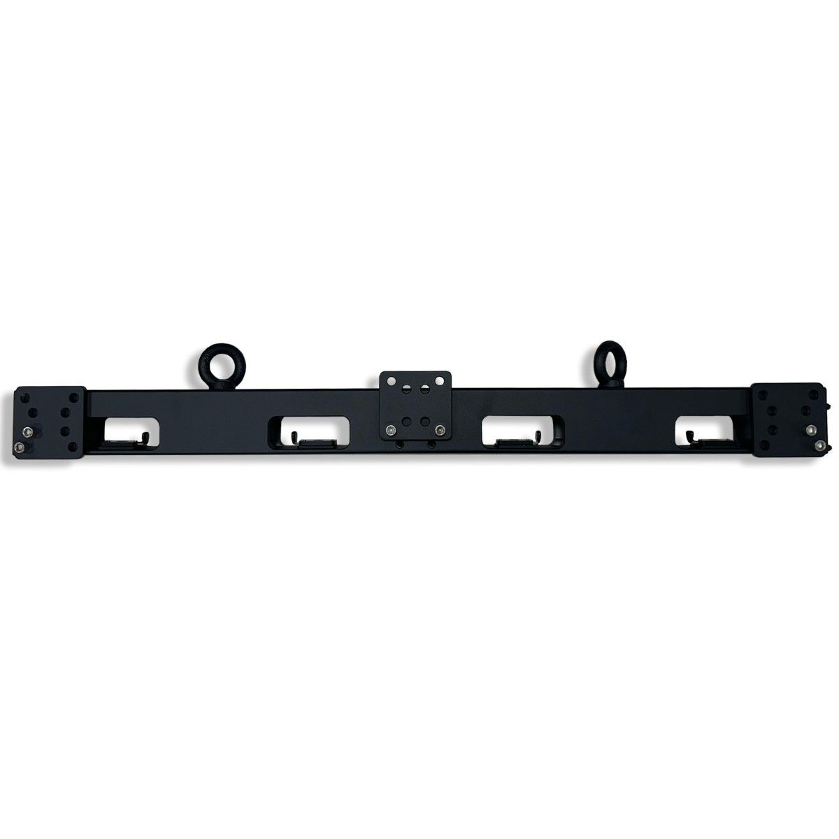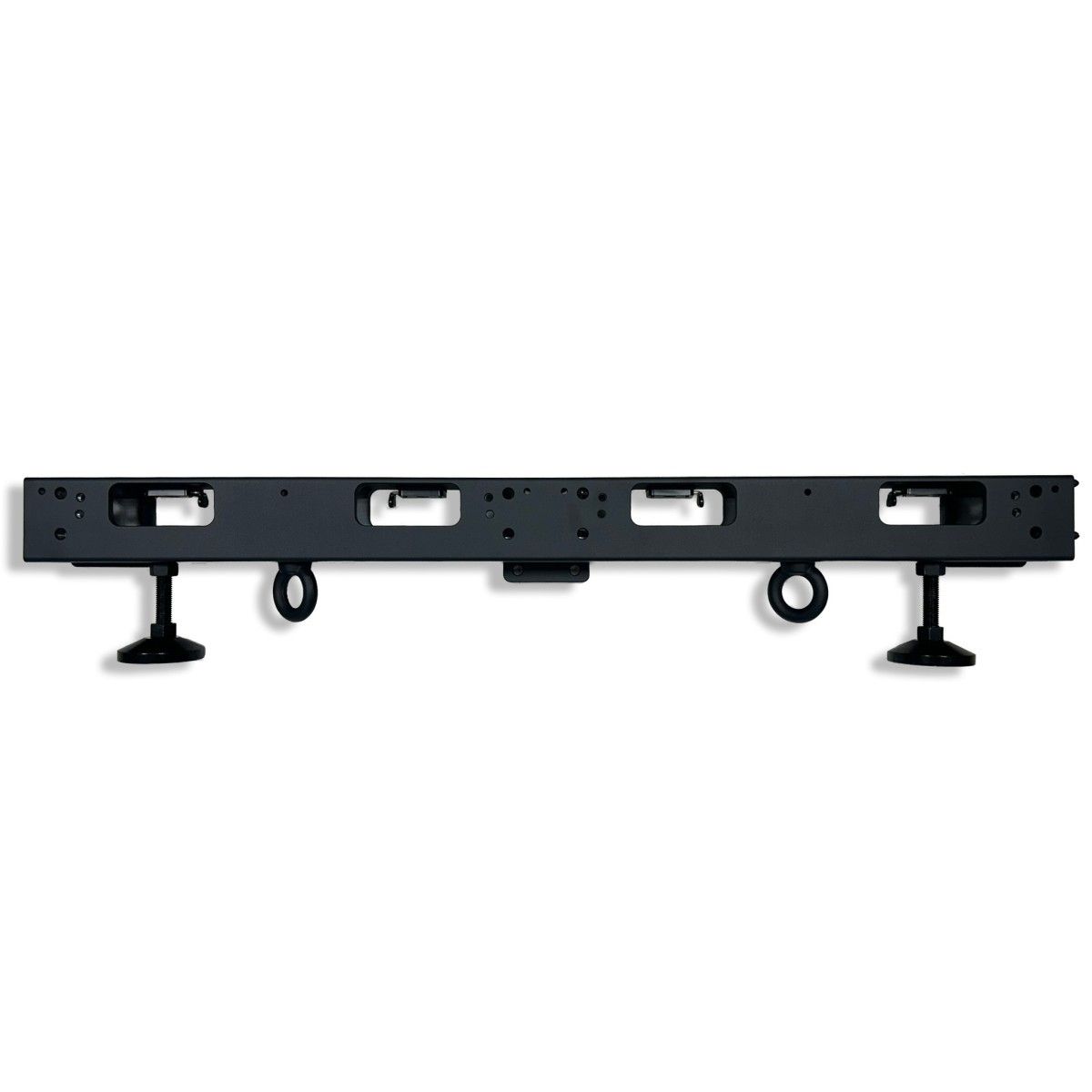1000mm heavy duty hanging bar for Magic Series LED panels. Engineered for strength and precision, it provides secure overhead support for modular LED cabinets and can also be used as a ground support structure with the addition of compatible feet. The bar features two M16 hanging rings and four M16 ground feet mounts, allowing it to transition seamlessly between suspended and floor-mounted configurations. Its precisely engineered mounting points, including M6 and M10 threaded holes, ensure compatibility with a wide range of rigging systems and screen formats.