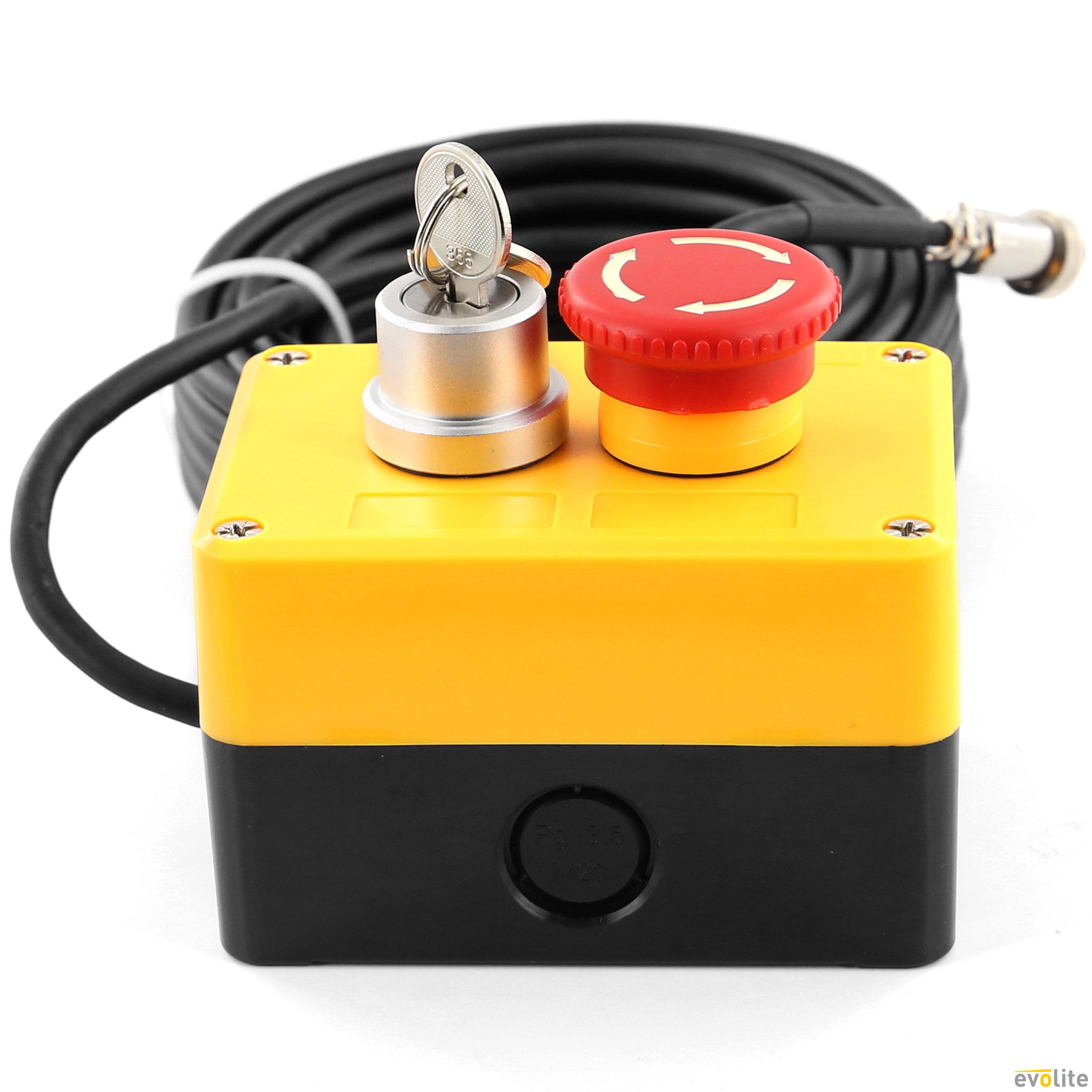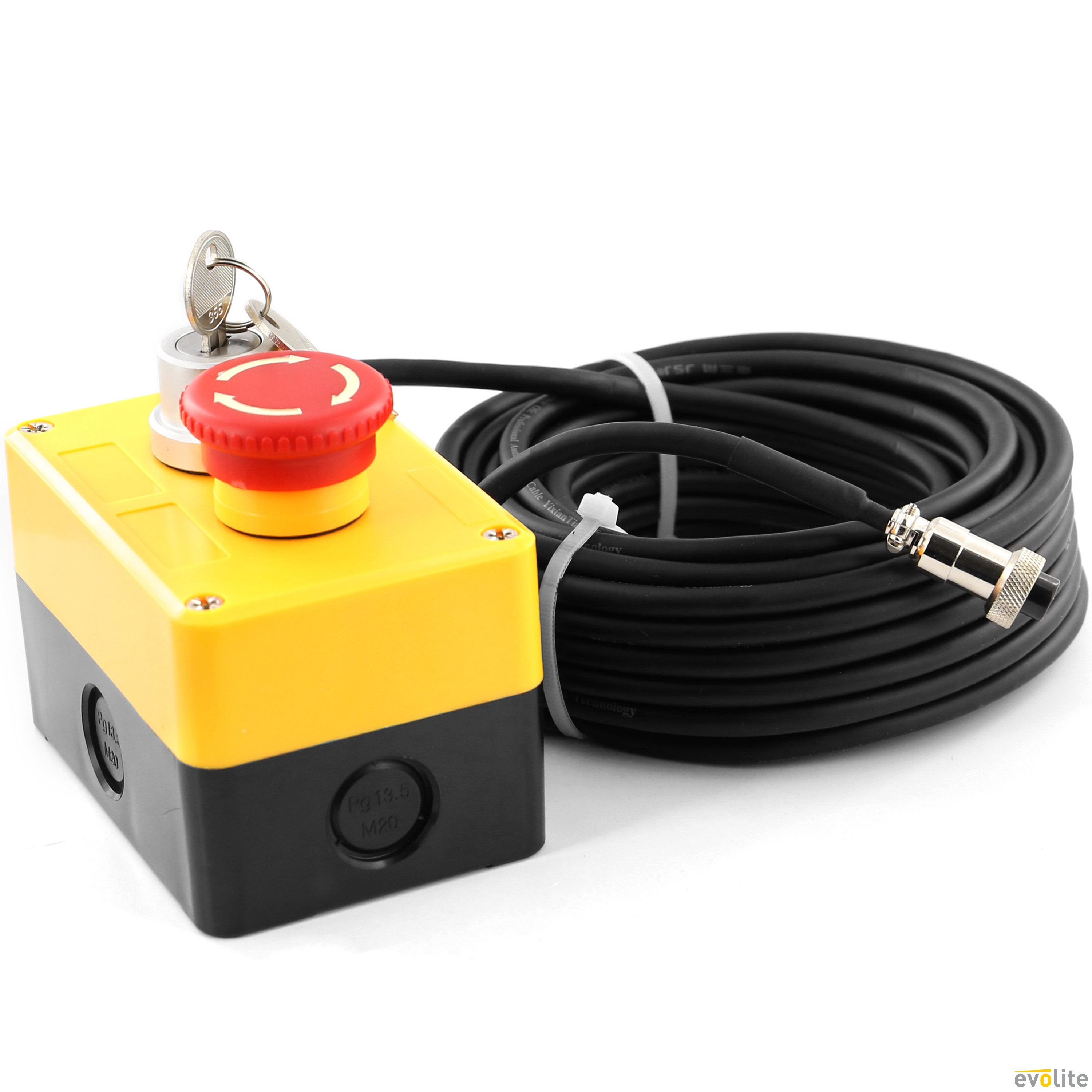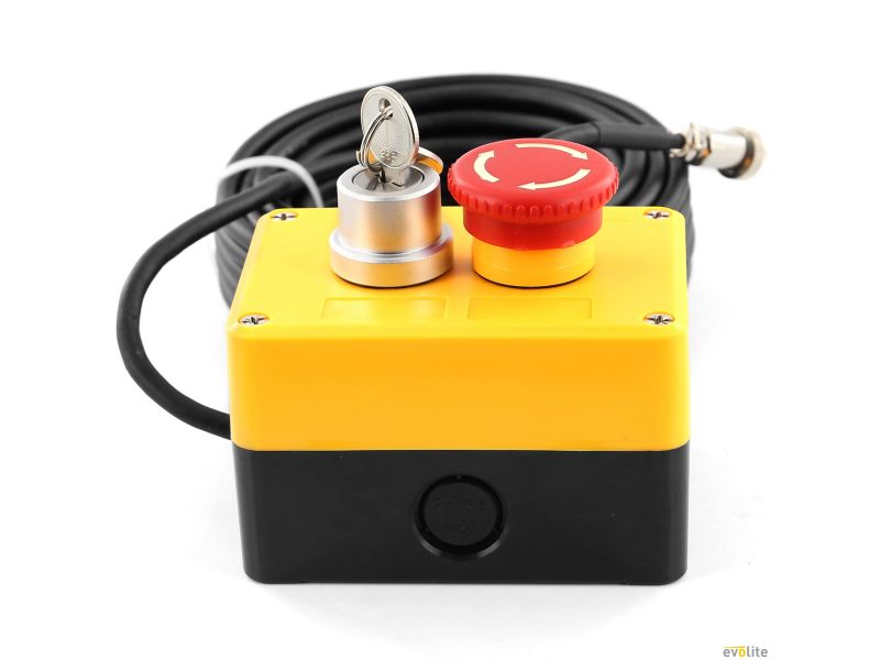 The Evolite Interlock Infinium is a safety switch dedicated to the Evolite Infinium 2200, 3300 and 6600 lasers. It allows instantaneous laser shutdown for reliable and secure control, ideal for events and fixed installations.