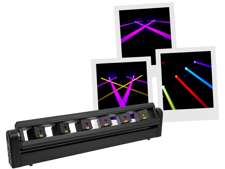 Bar with 6 motorised LASER beams, evolite LASER Bar 6x400RGB.