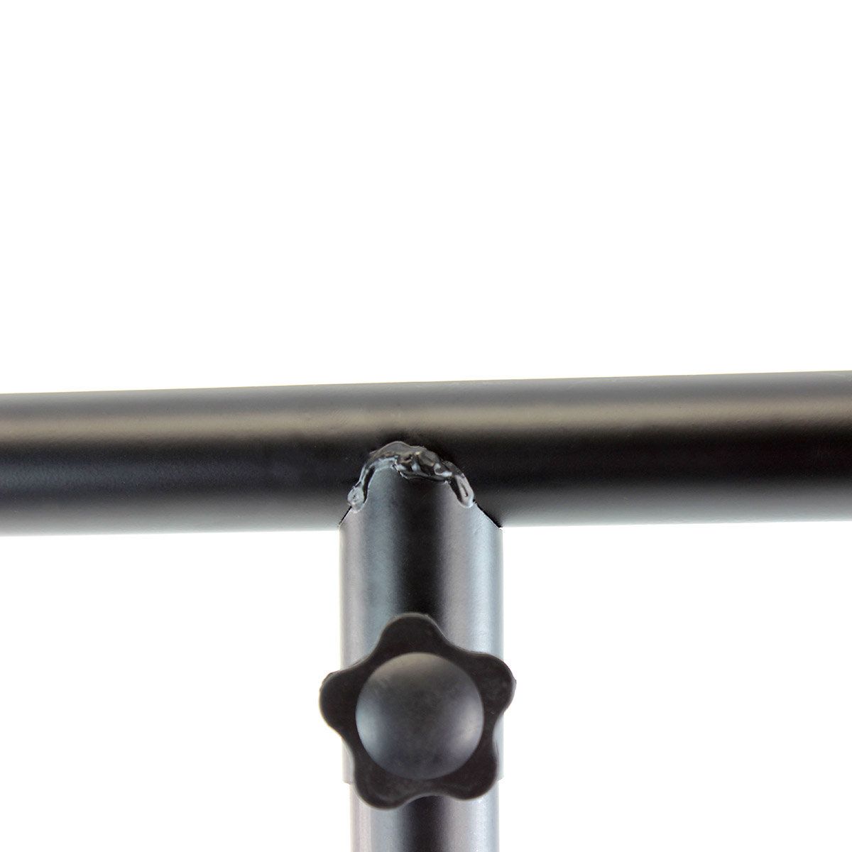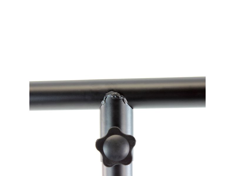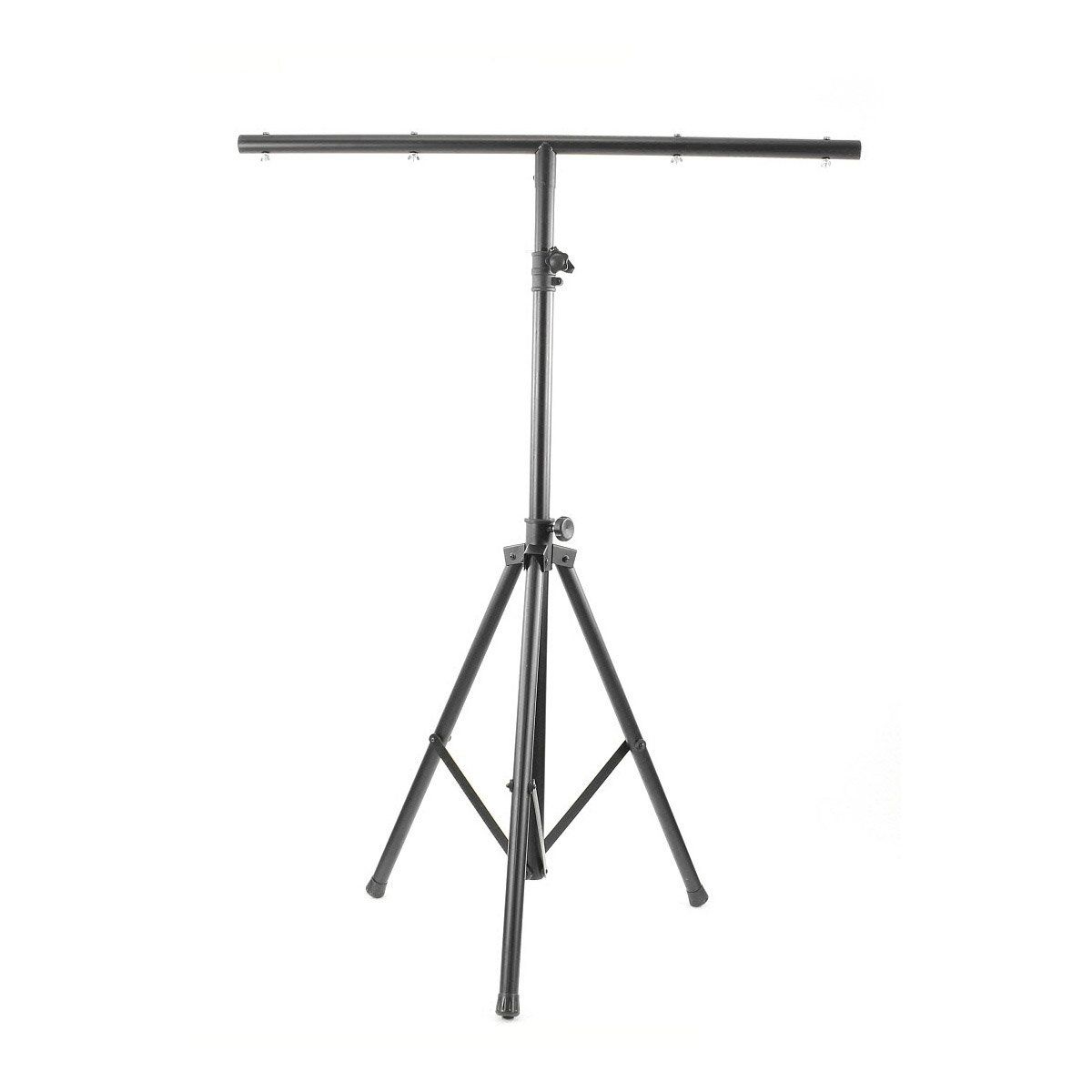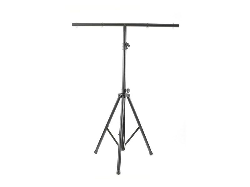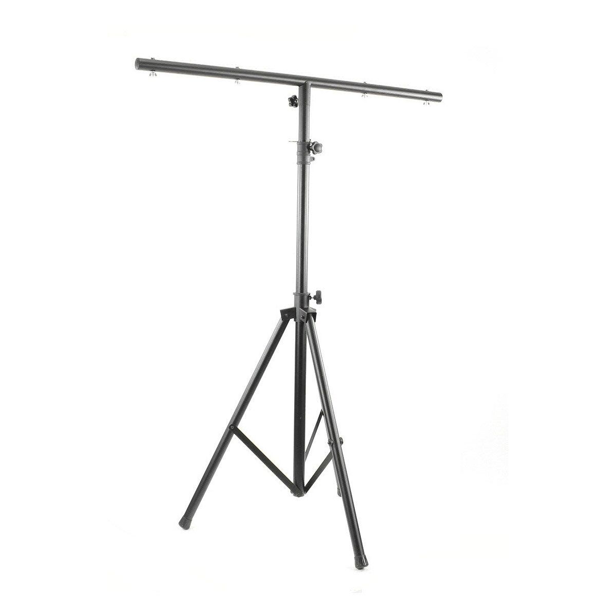 BoomToneDJ LT1 Metal Light stand Stand with mounting bar for 1 to 8 fixtures T#Bar Max load 30 kg Diameter of Tube 38mm Black paint finish 4 screws for attachment points Safety Pin grooved Body 2 feet tubes Feet foldable tripod B...