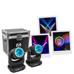 Set of 2 Mac Beam 150 LED lights with flight case. Powerful luminous flux, varied effects and DMX control for professional applications.