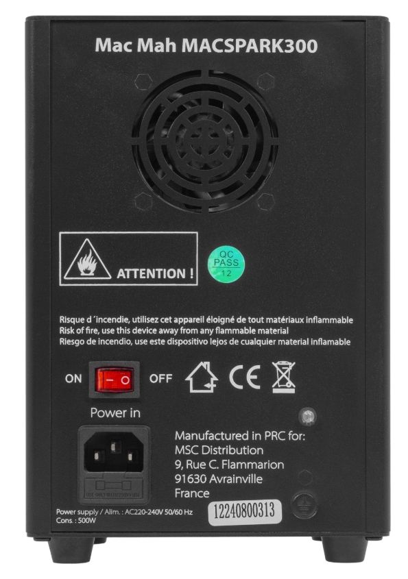 Mac Spark 300 machine Mac Mah Mac Spark 300 Spark machine Safe and easy to use (please read the instructions carefully) Wireless remote control No special authorisation required Reservoir consumption time ≈ 4 minutes Refill consumption t...