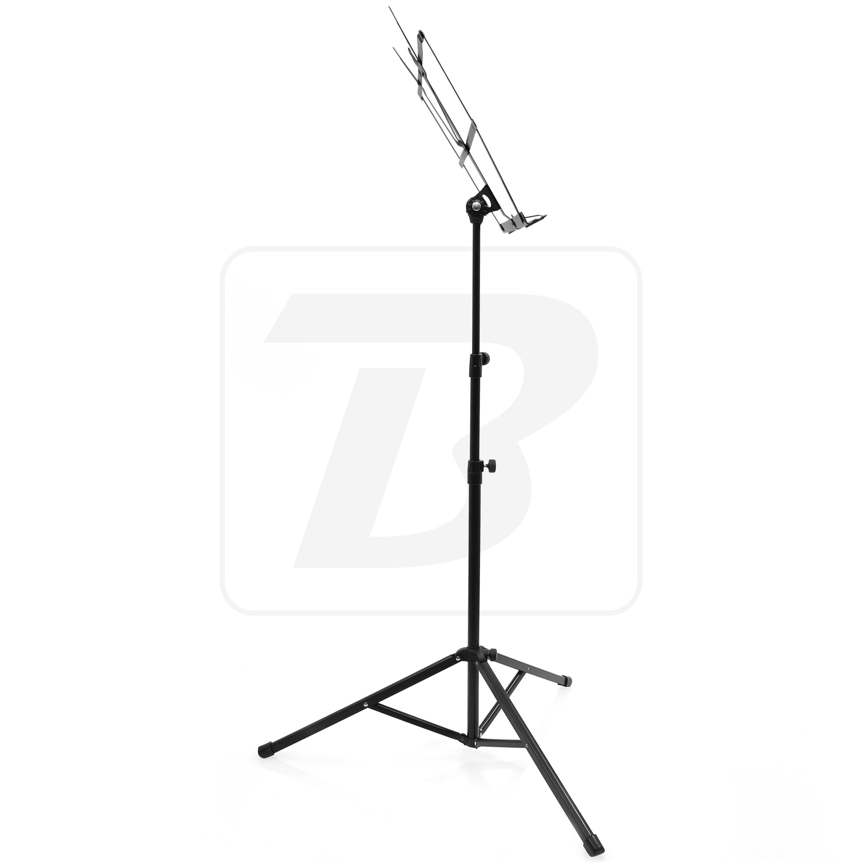 BoomToneDJ MUS#1Completely made of aluminumOne#hand adjustment of the music deskU#profile legs with cross bracesTraditionally foldable, 3#piece folding designBlack color finish
