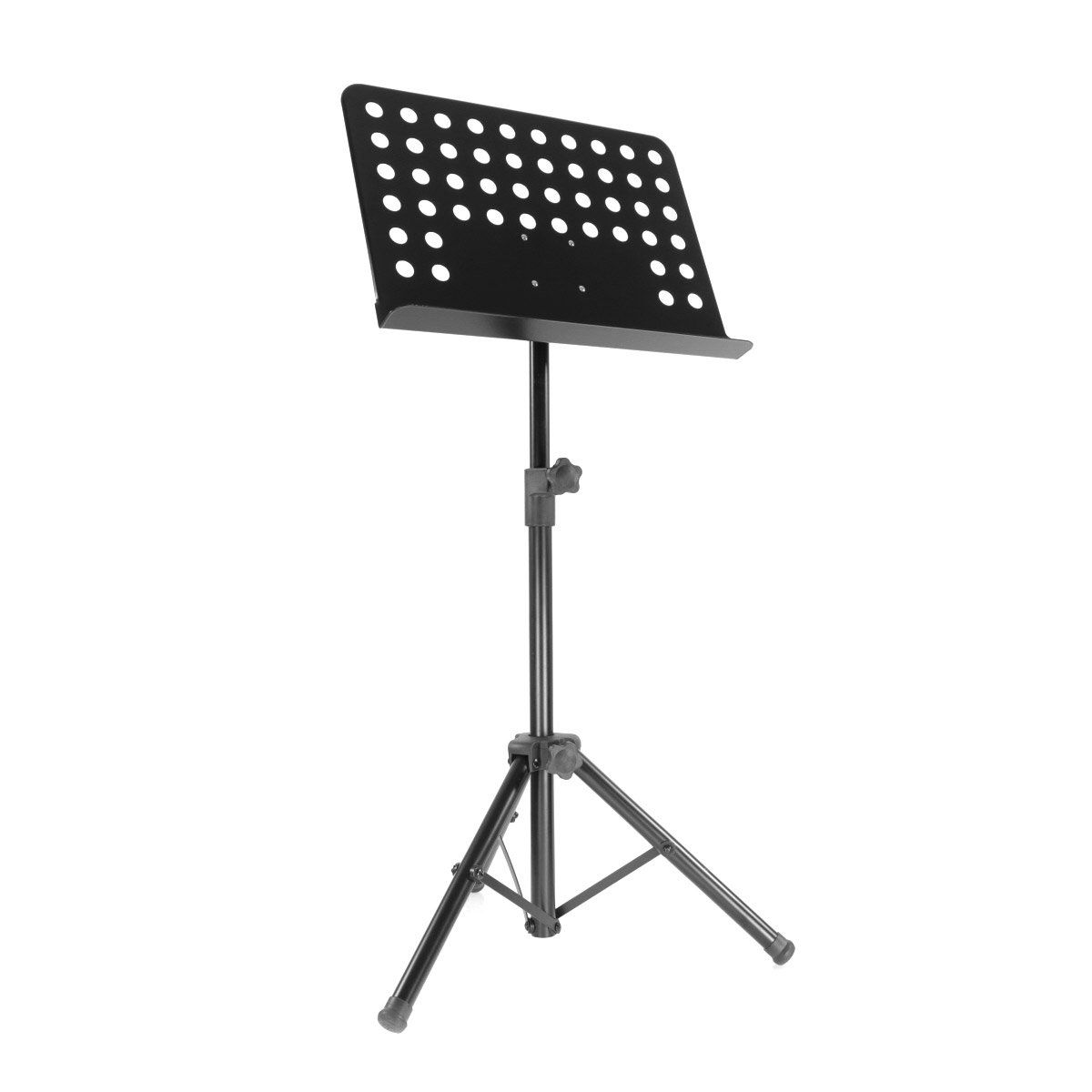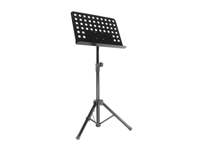 BoomToneDJ MUS#2 Very stable music stand, suitable for heavy partitions Very easy to assemble Folding tripod base and perforated metal tray Height adjustable from 65 to 120 cm