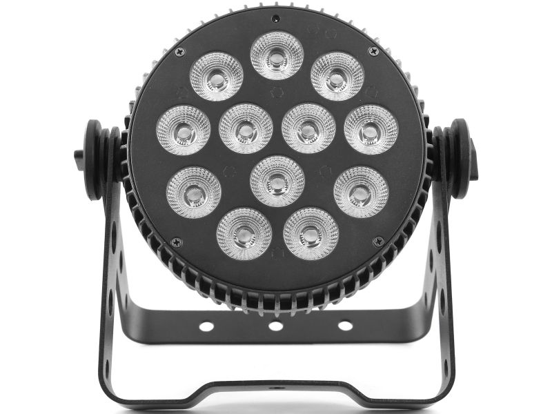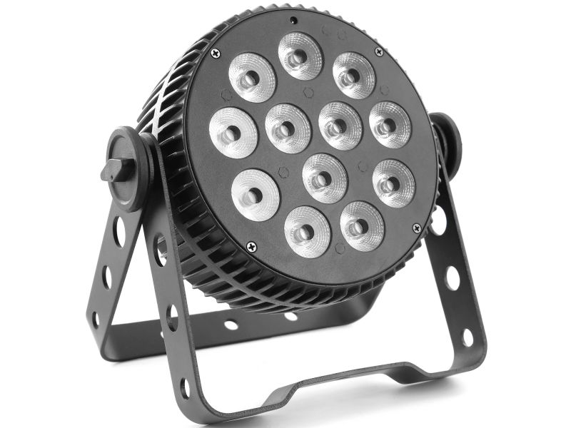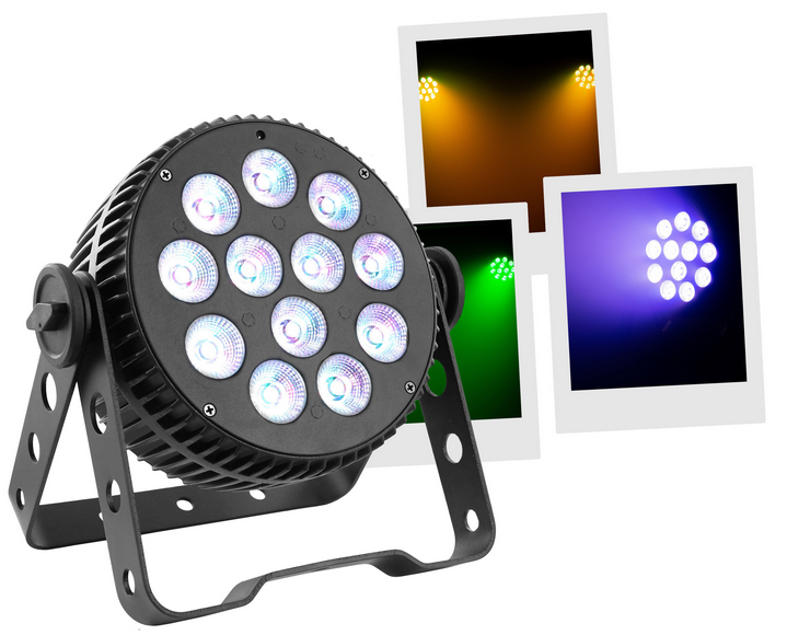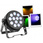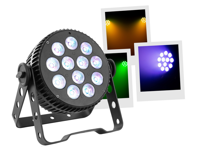 12 LED 10W RGBW 6-in-1 LED Floodlight LED PAR Aluminum housing Controllable in DMX, auto., musical, IR remote control Master/slave mode only on DMX Quiet aluminum NFC case, no fan noise Perfect color mixing thanks to its 6#in#1 LEDs Vari...