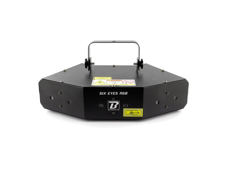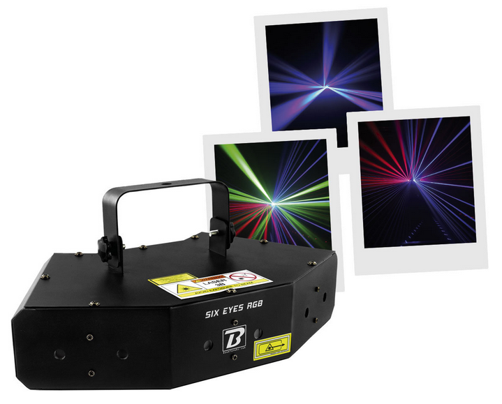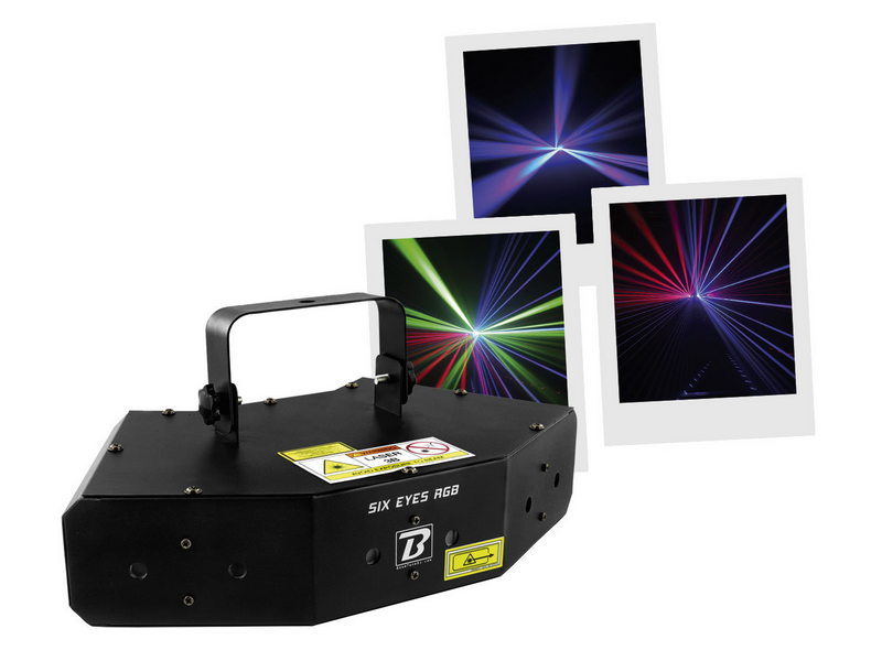 260mW RGB multipoint LASER with rotary effect LASER light set with 6 RGB openings ultra#powerful rotary effects Class 3B Protection key Automatic mode / Sound detection / DMX 8 DMX channels Car programs