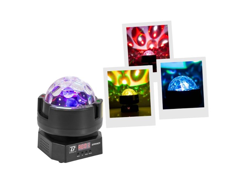 Discover the BoomTone DJ Spinner LED light show, with multi-beam effects, Stroboscope and dynamic red/green projections. Ideal for DJs, parties and events.