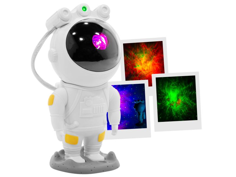 Treat your child (or your child's soul) to a magical journey through the stars with the BoomTone DJ Star Man. This unique nightlight projects an animated coloured nebula and a starry sky with green LASER, transforming the bedroom into a soothing galactic universe. Perfect for creating a soft atmosphere before bedtime, it stimulates the imagination while providing reassurance in the dark. Designed for simple, safe use, the Star Man runs on a rechargeable battery and can be controlled remotely using an intuitive remote control. There's no need to get up once your child is asleep: you can activate the timer (45 or 90 minutes) and let the magic happen all by itself. The green LASER is Class 1, totally safe for domestic use, even in a child's bedroom. Its astronaut design is an instant hit: fun, decorative and original, it looks just as good in a child's bedroom as it does in an adult's relaxation area. Easy to recharge via USB-C, with no visible cables, it remains mobile and practical for everyday use. The BoomTone DJ Star Man is much more than a nightlight: it's an invitation to dream, soothe yourself and explore space... without leaving your bed.