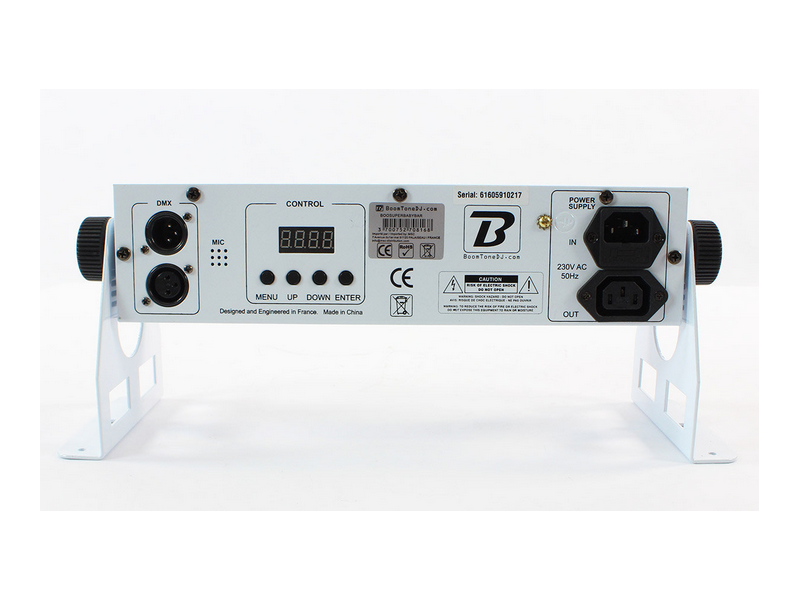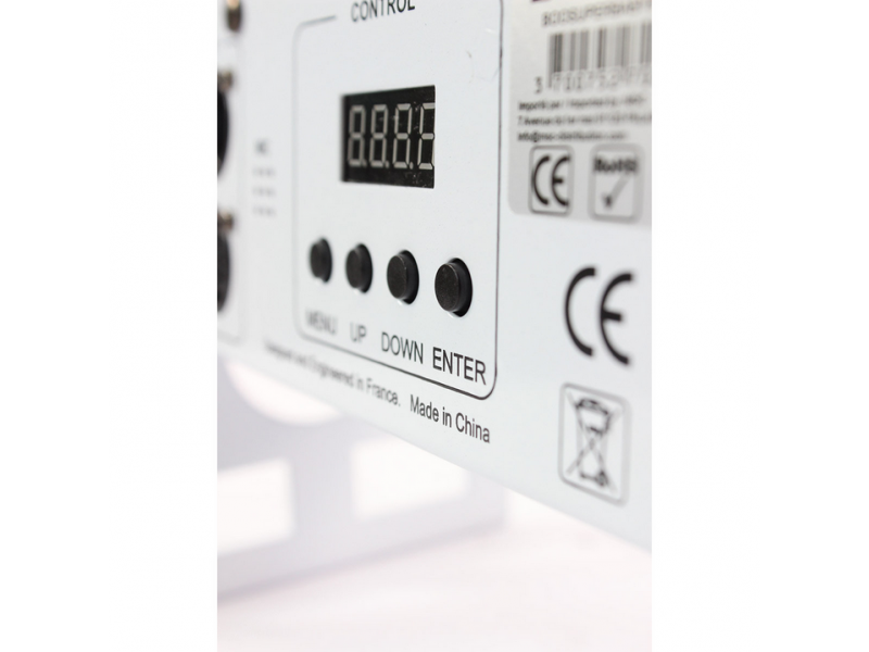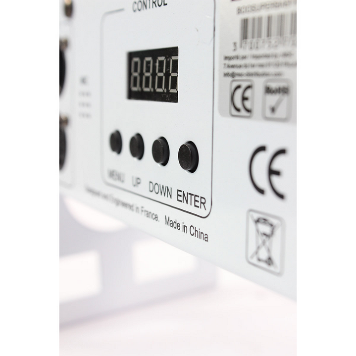 LED bar. 4 or 8 DMX channels 4 buttons and digital screen for an eased browsing Auto mode, audio, DMX512 and master/slave IR remote control included