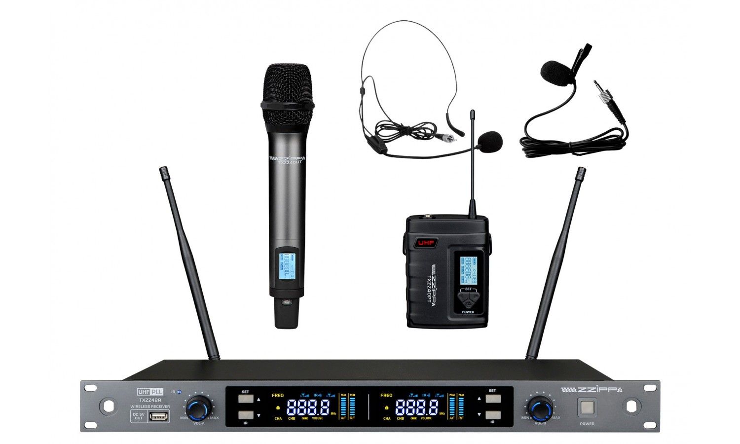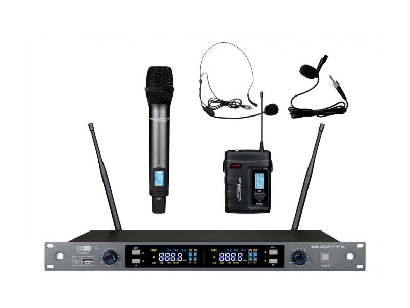 TXZZ424 je dodávaný s prijímačom, jedným ručným mikrofónom a jedným Bodypack vysielačom, ktoré umožňuje pripojenie klopového (lavalier) mikrofónu alebo náhlavného headset mikrofónu.