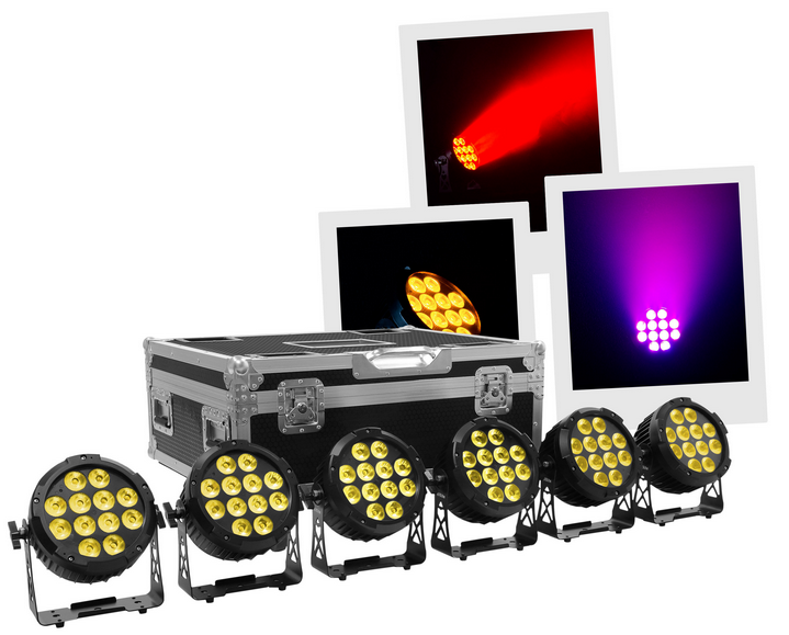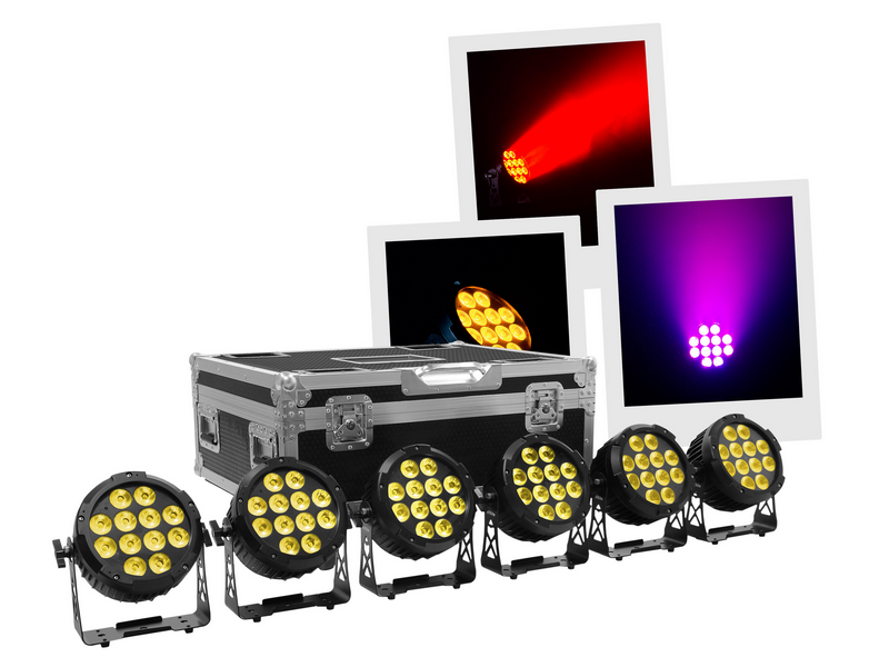 12x 12W RGBWA-UV 6-in-1 LED floodlight.